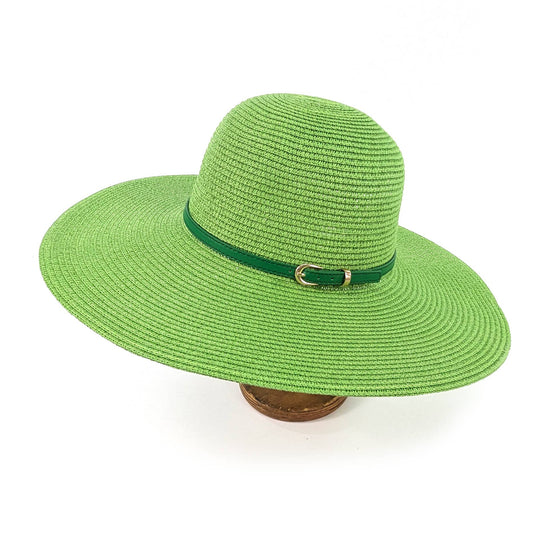 Black Ginger - Bright and Bold Wide Brim Foldable Hat - Parakeet Green