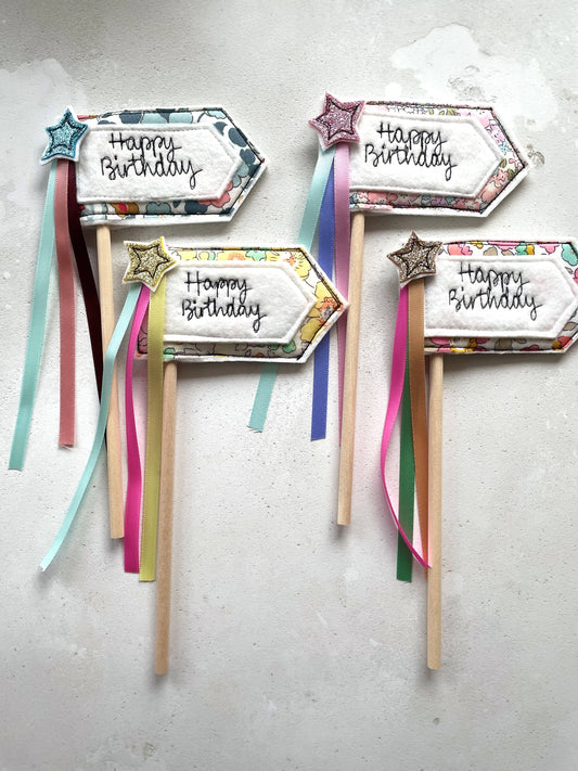 Girl Friday Embroidery - Happy Birthday Cake Topper Flag
