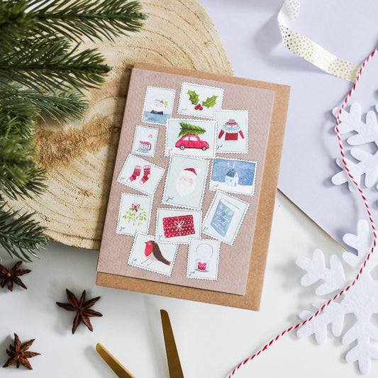 Illustrated Christmas Postage Stamp Card
