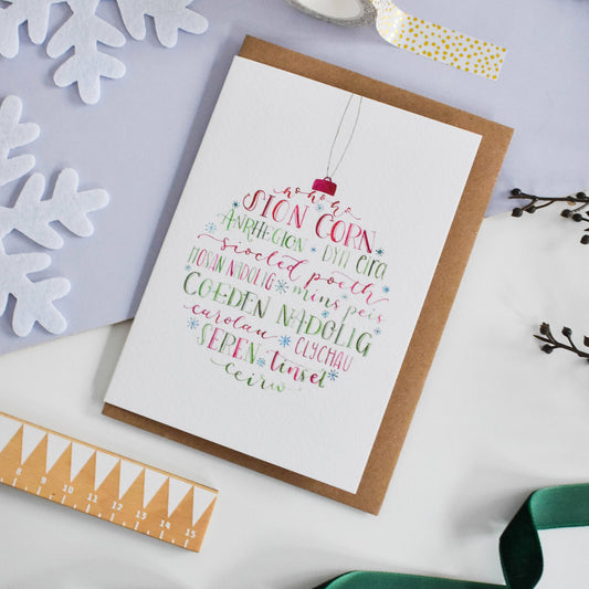 Welsh Typographic Christmas Bauble Card
