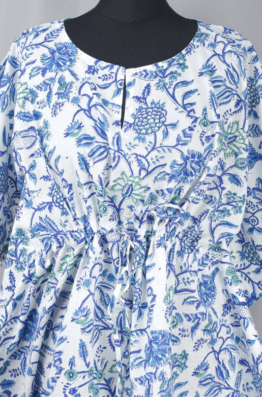 Kanthor Decor Block Printed Cotton Coverup / Kaftans- White Wildflowers