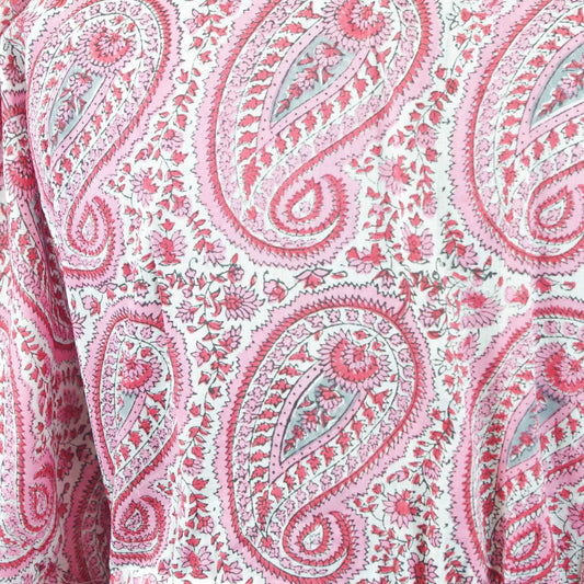 Kanthor Decor Block Printed Cotton Coverup / Kaftans -Pink Paisley