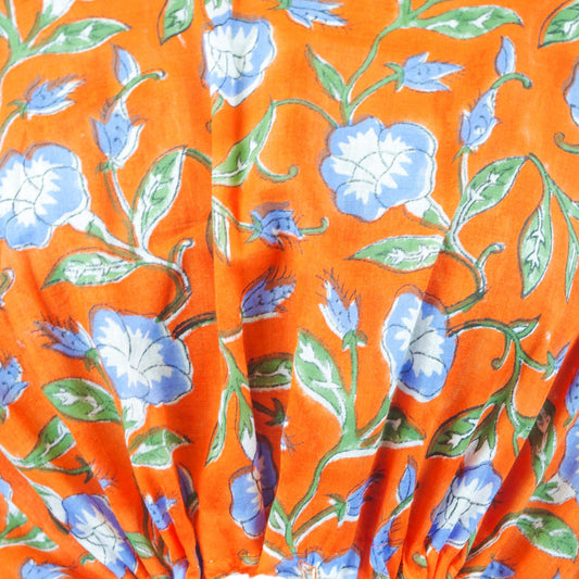 Kanthor Decor Block Printed Cotton Coverup / Kaftans -Orange