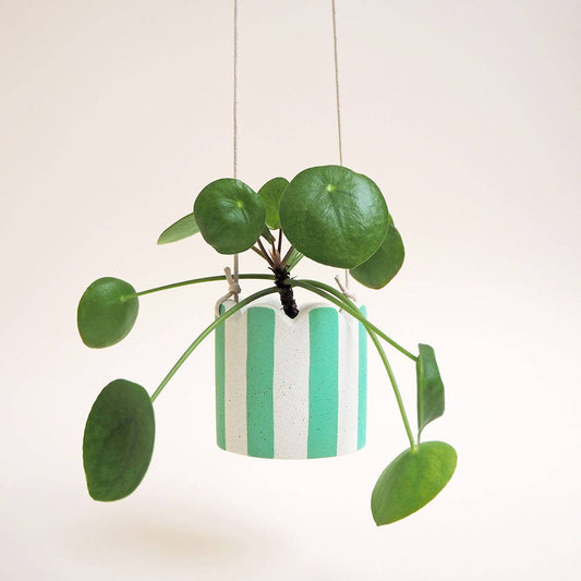 Hello Marilu Small Stripy Hanging Pot - Warm White / Mint