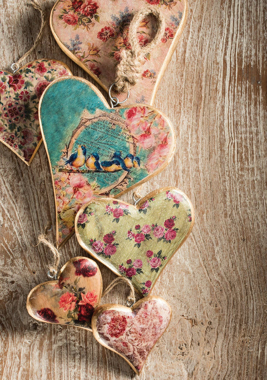 Namaste - Small Vintage Wooden Hanging Heart Decoration