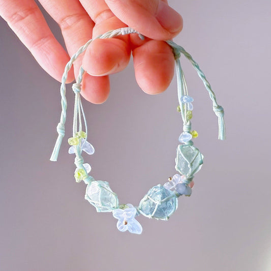 Ninaouity - - Throat and Heart Chakra Aquamarine Crystal and Butterfly Handmade Macrame Bracelet