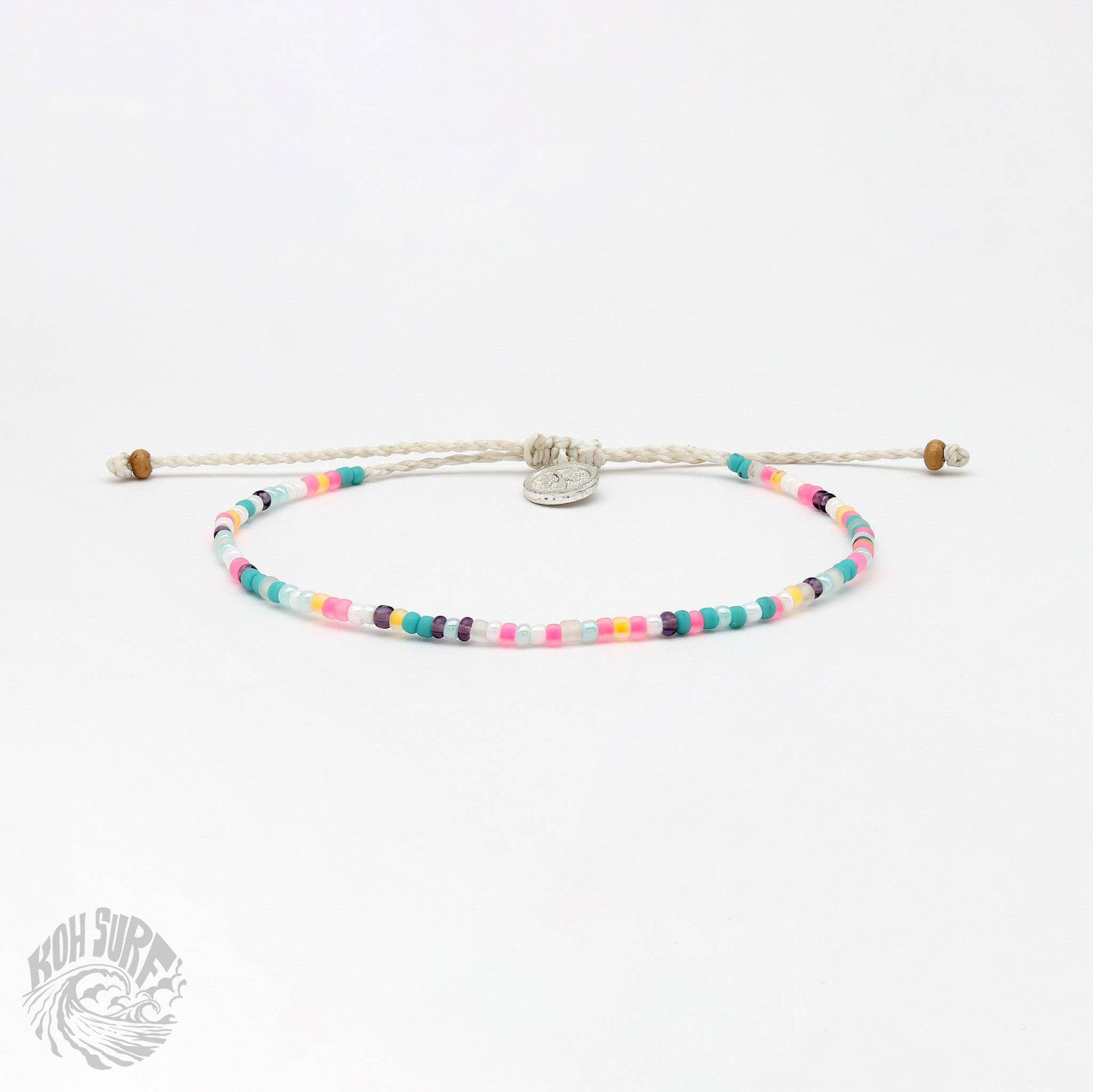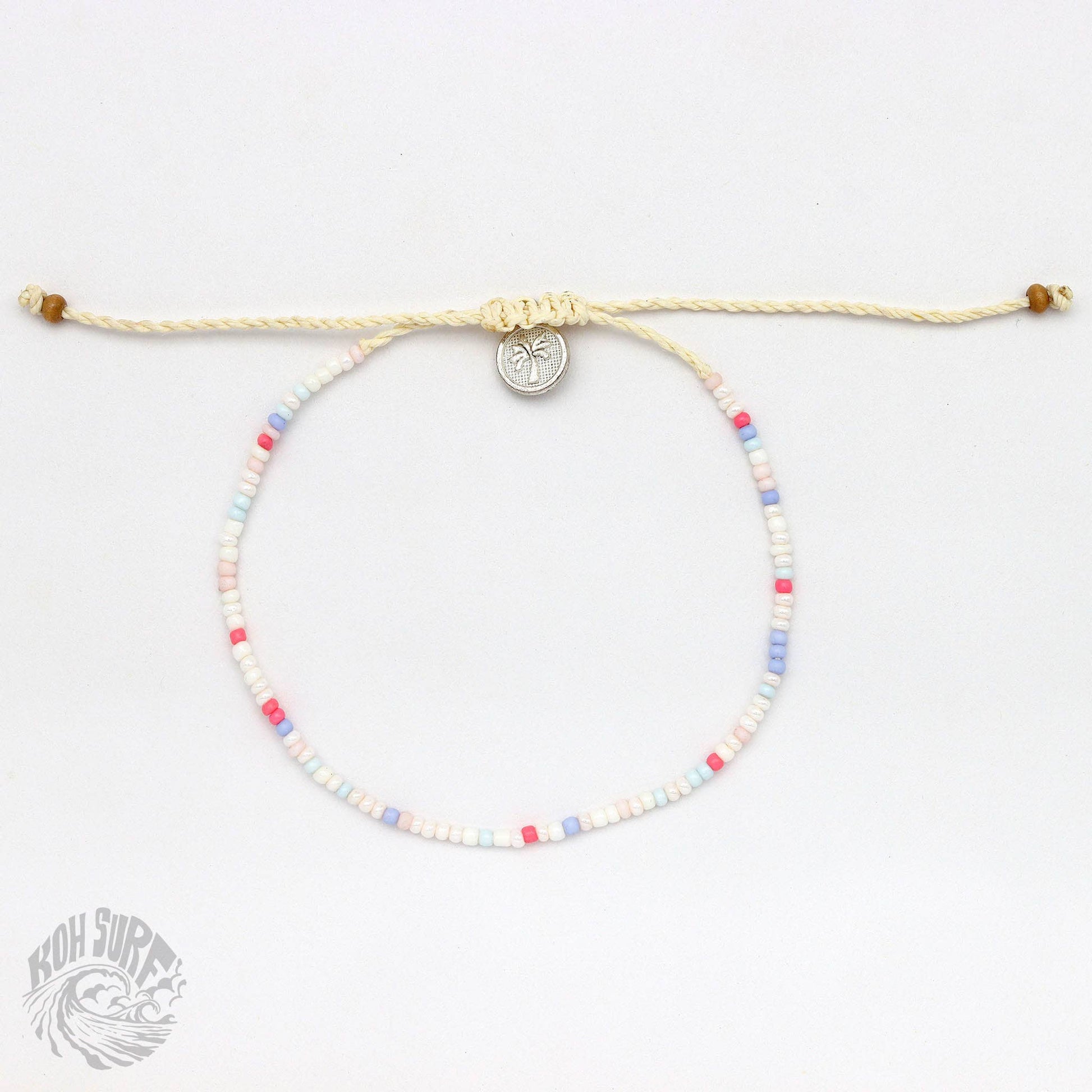 Welcome to Pineapple Island's sister brand, Koh Surf, where style meets affordability for those seeking beach style on a budget! Step onto the sand in style with the Alila beaded anklet. With a wax polyester cord to complement the colour pattern of the beads, this simple anklet design is the subtle accessory your bare ankles will love this summer. Making this the perfect gift for her. Made with hand-braided, durable wax polyester cord. - Measures approx. 20cm with a 10cm sliding knot extension. - Handmade in Bali.