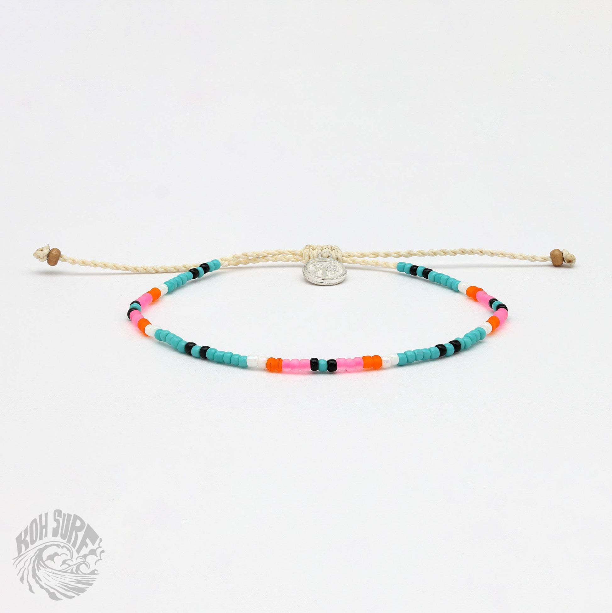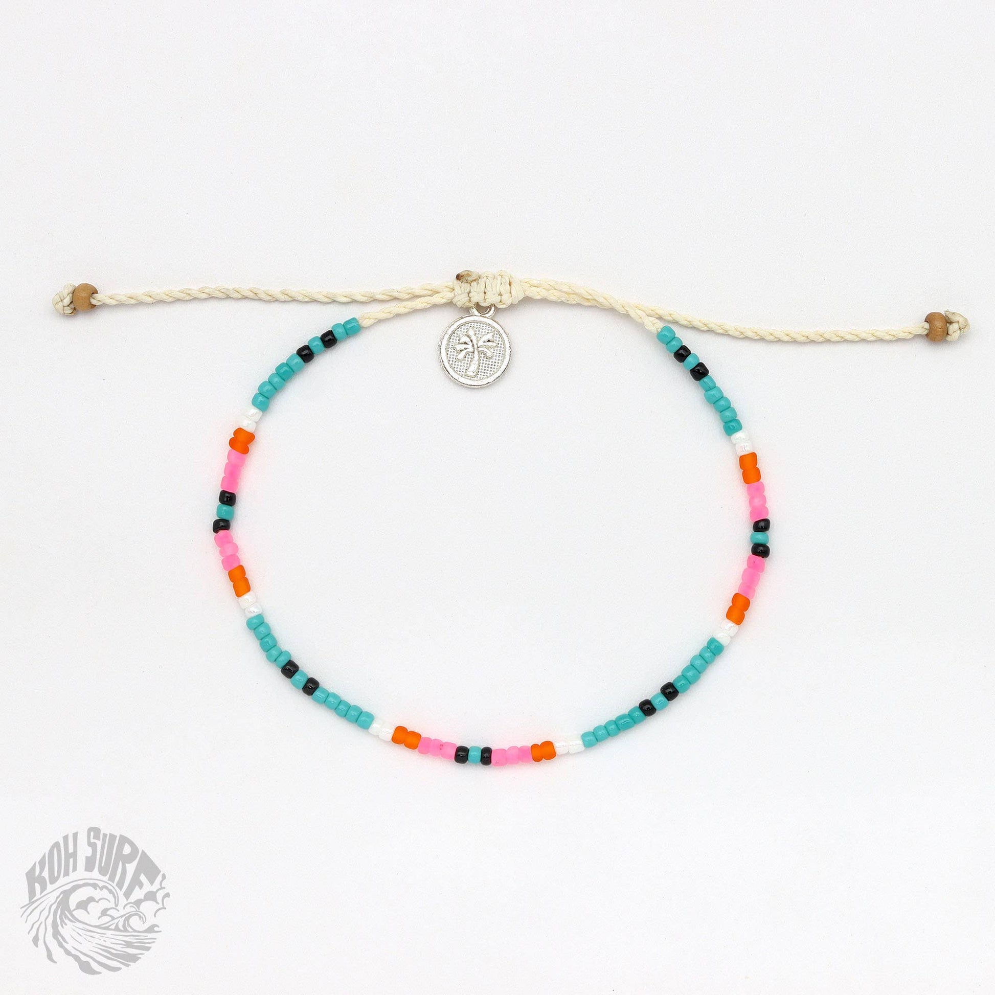 Welcome to Pineapple Island's sister brand, Koh Surf, where style meets affordability for those seeking beach style on a budget! Take a trip to the beach in style with the Alila beaded bracelet. With a wax polyester cord to complement the colour pattern of the beads, this simple bracelet design is the subtle accessory your wrists will love this summer. - Measures approx. 17cm with a 7cm sliding knot extension. - Made with colourful glass seed beads strung on a wax polyester cord. - Handmade in Bali.