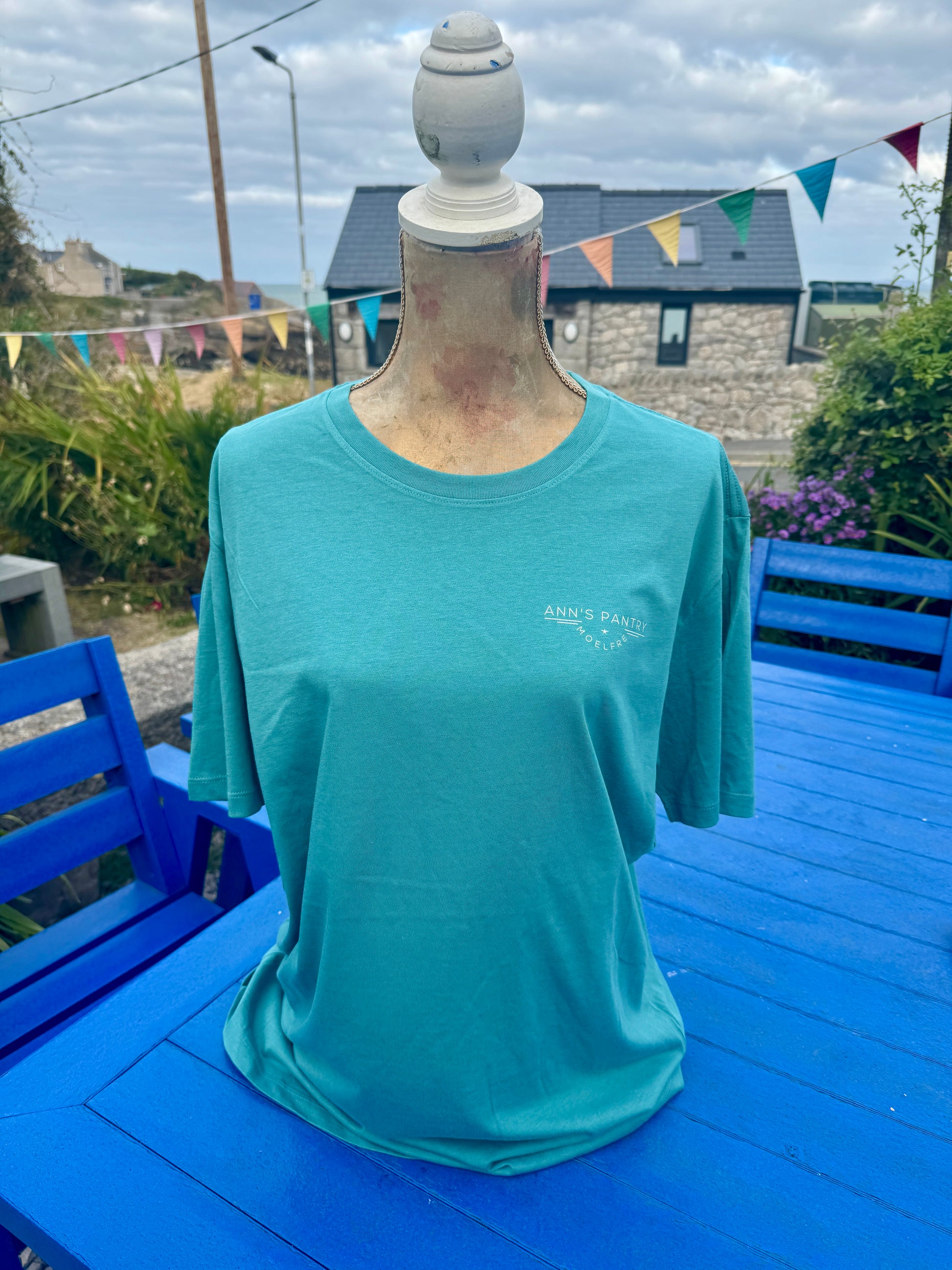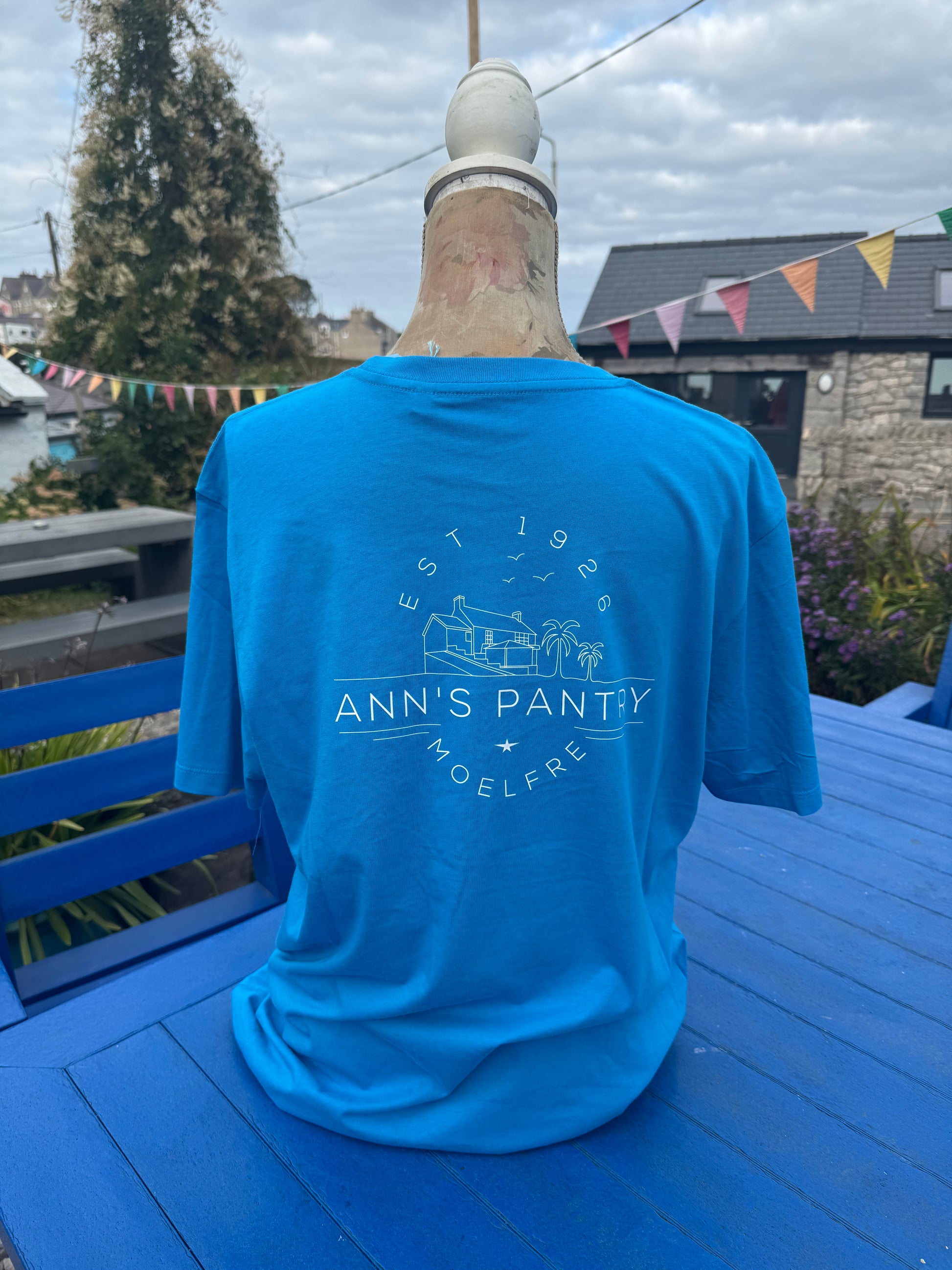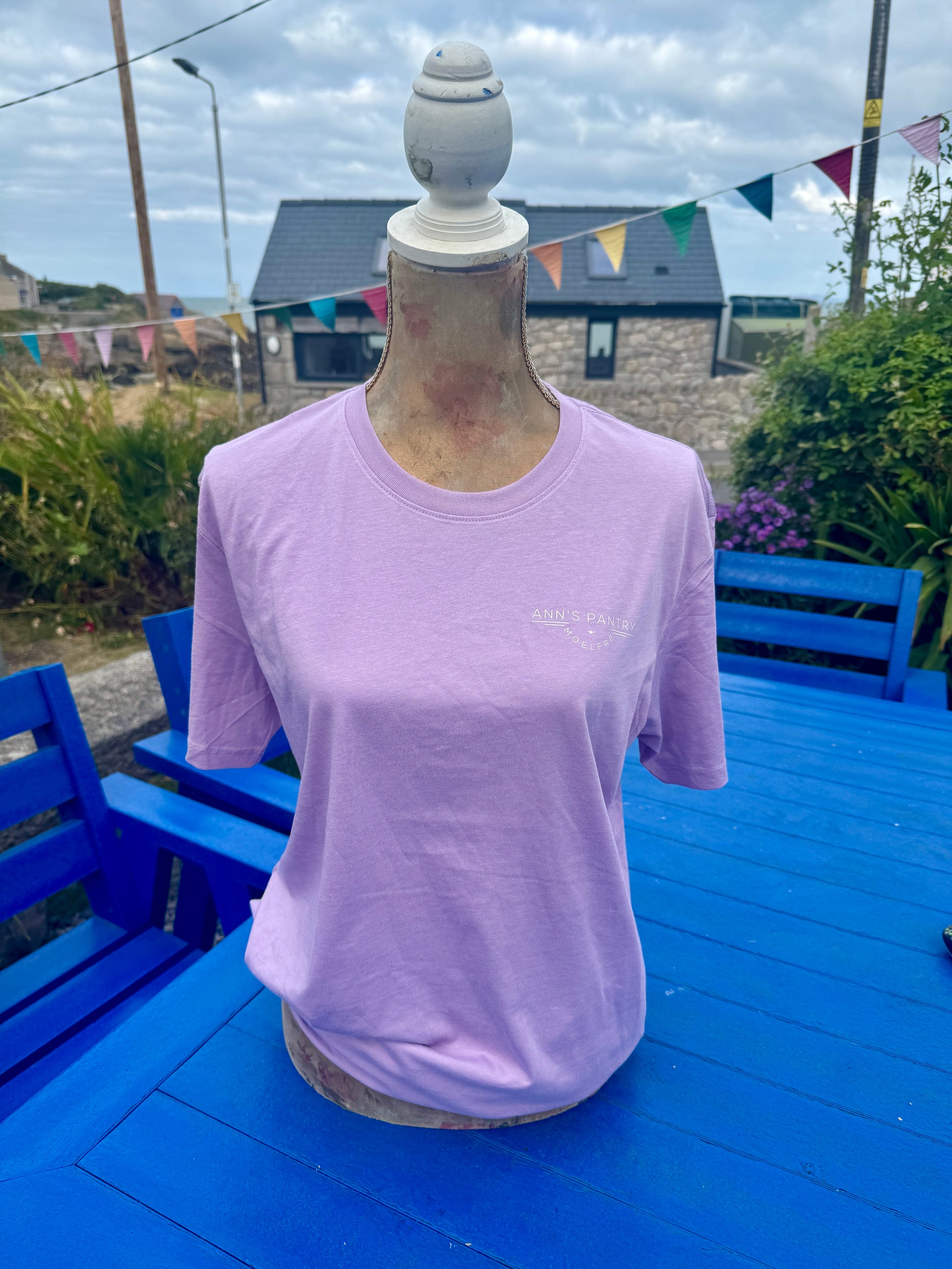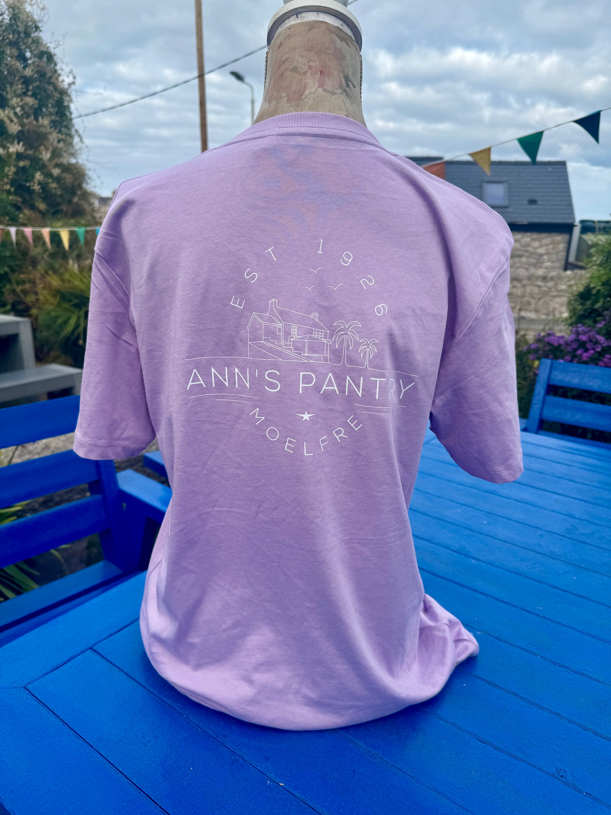 T-shirt with "Ann's Pantry" on front left shoulder and Ann's Pantry logo on the back.