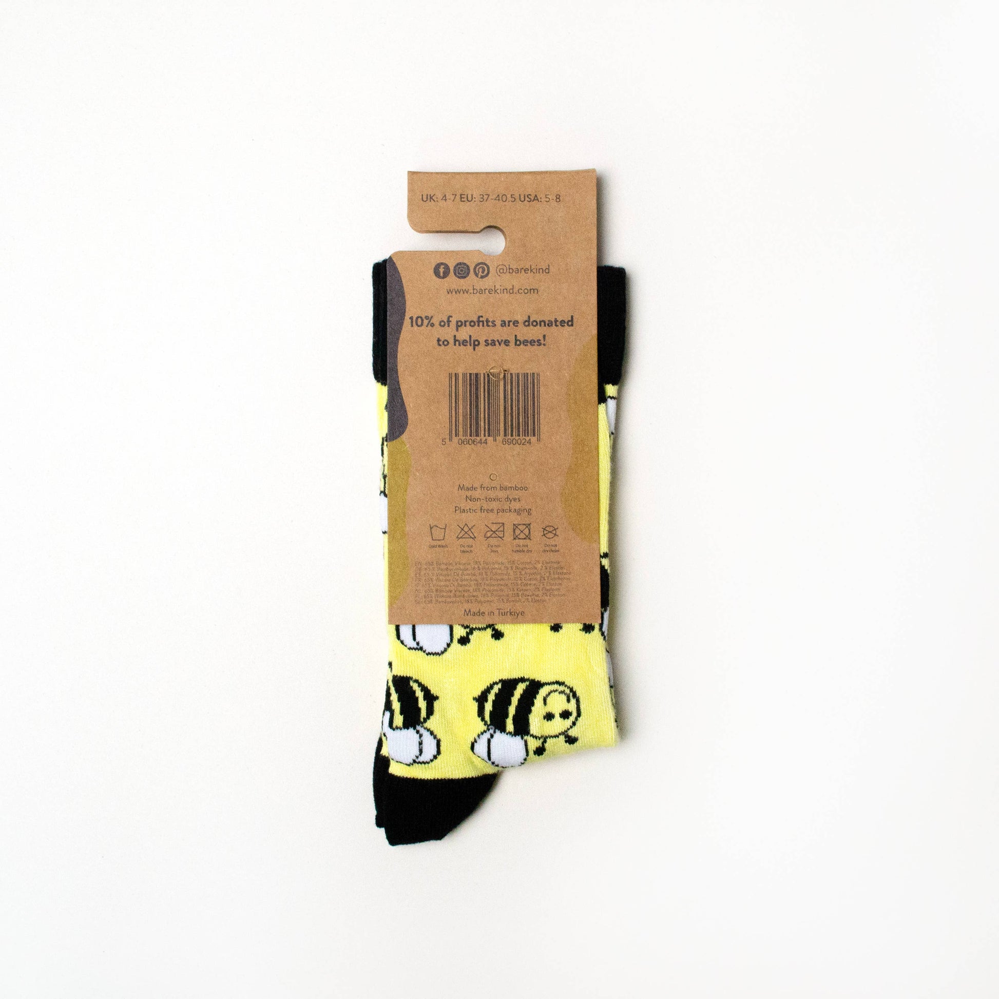 These Socks Save Bees with 10% of profits donated to the Bumblebee Conservation Trust. Our socks are: * Thermoregulating (cool in summer, warm in winter) * Sweat-proof (moisture-wicking & anti-bacterial) * Softer than cotton * Wash cold for the environment (30 degrees) * OEKO-Tex Certified * SEDEX Audited * 100% Recyclable packaging Bare Kind was founded by Lucy in 2018 to save endangered animals worldwide through partnerships with Charities. These socks are part of the Outback Collection. This Collection is inspired by the incredible bushlands of the world. These gender neutral socks are loved by all.