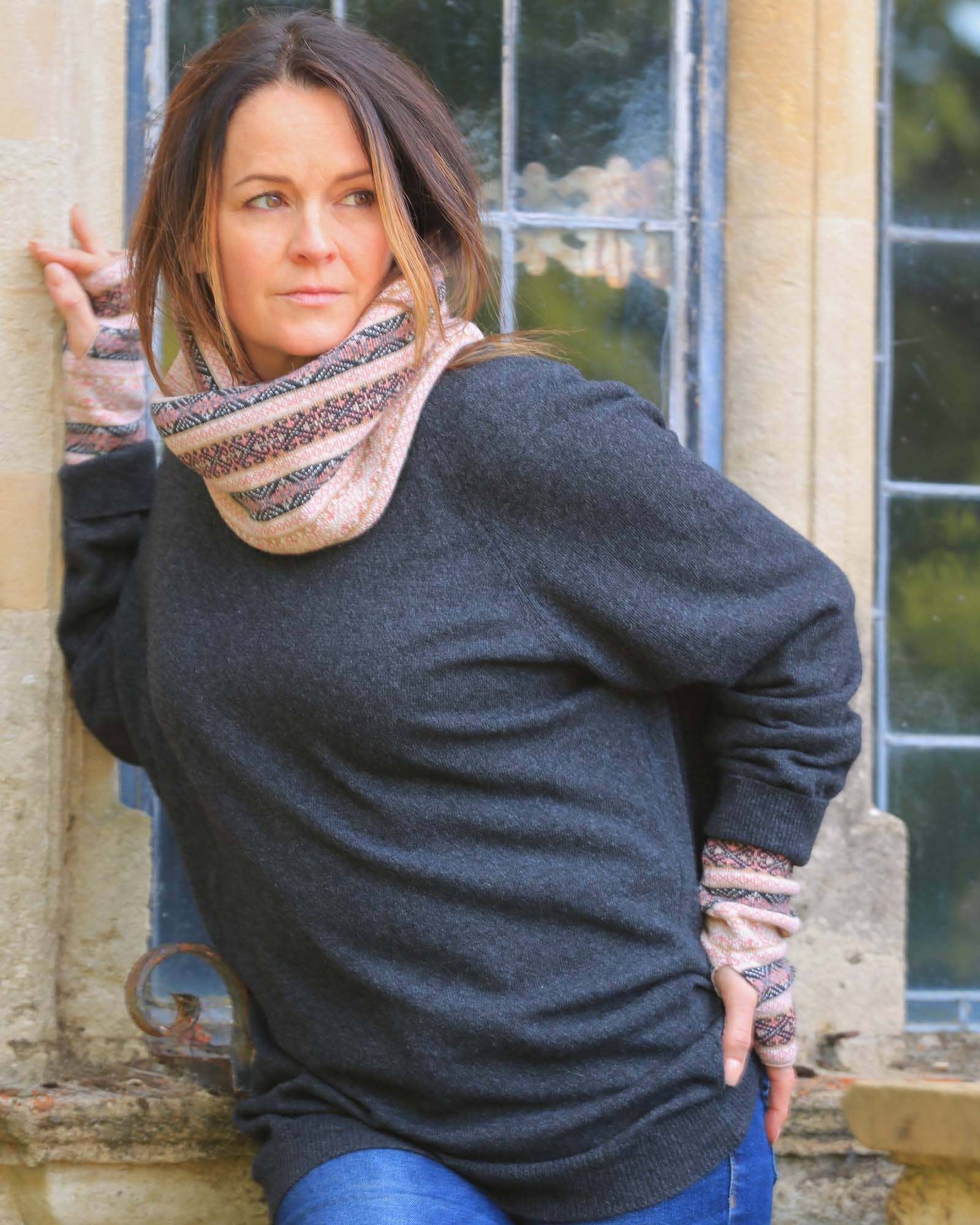 Cosy up in this wonderfully warm snood worked in a beautiful traditional Fairisle pattern. Knitted in a fine cashmere blend yarn, the Fairisle style pattern adds extra thickness for keeping out the Winter chill. Yarn blend:- 45% wool 25% viscose 20% polyamide 10% cashmere Manufacturing details:- This garment was knitted in Italy using top-quality Italian spun yarn, which has been finished to allow for machine washing. It does not bobble or pill, and if washed carefully, it will look like new for a long time! Care Instructions:- Wash by hand or machine wash at 30C on a cycle that is suitable for delicate woollens, using a fabric soap recommended for wool. Short spin and reshape whilst damp. Dry flat, or if this isn't possible hang over a thick towel on an airer. A few shots of steam once dry will remove any wrinkles. Do not touch the garment with the iron when steaming!