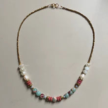 Gist Jewellery pink, blue and white beaded necklace with pearls