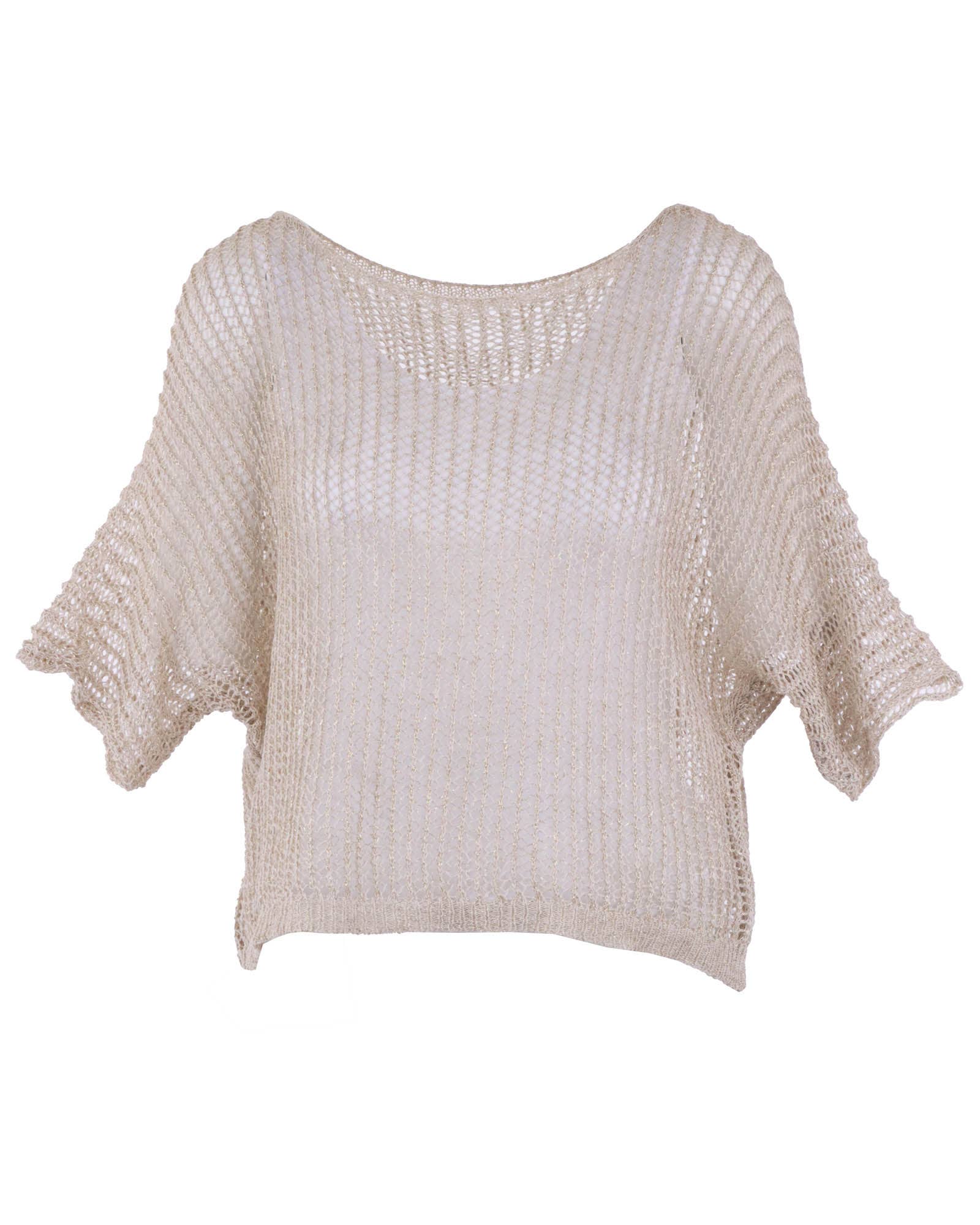 A loose knit with a decorative stitch, this is a simple dolman shape with a boat neck and ribbed trims which will become a wardrobe favourite! Easy to pull on with linen trousers or over a dress. Some lovely neutral colours or brights to choose from, all with a barely there gold thread for understated glamour!