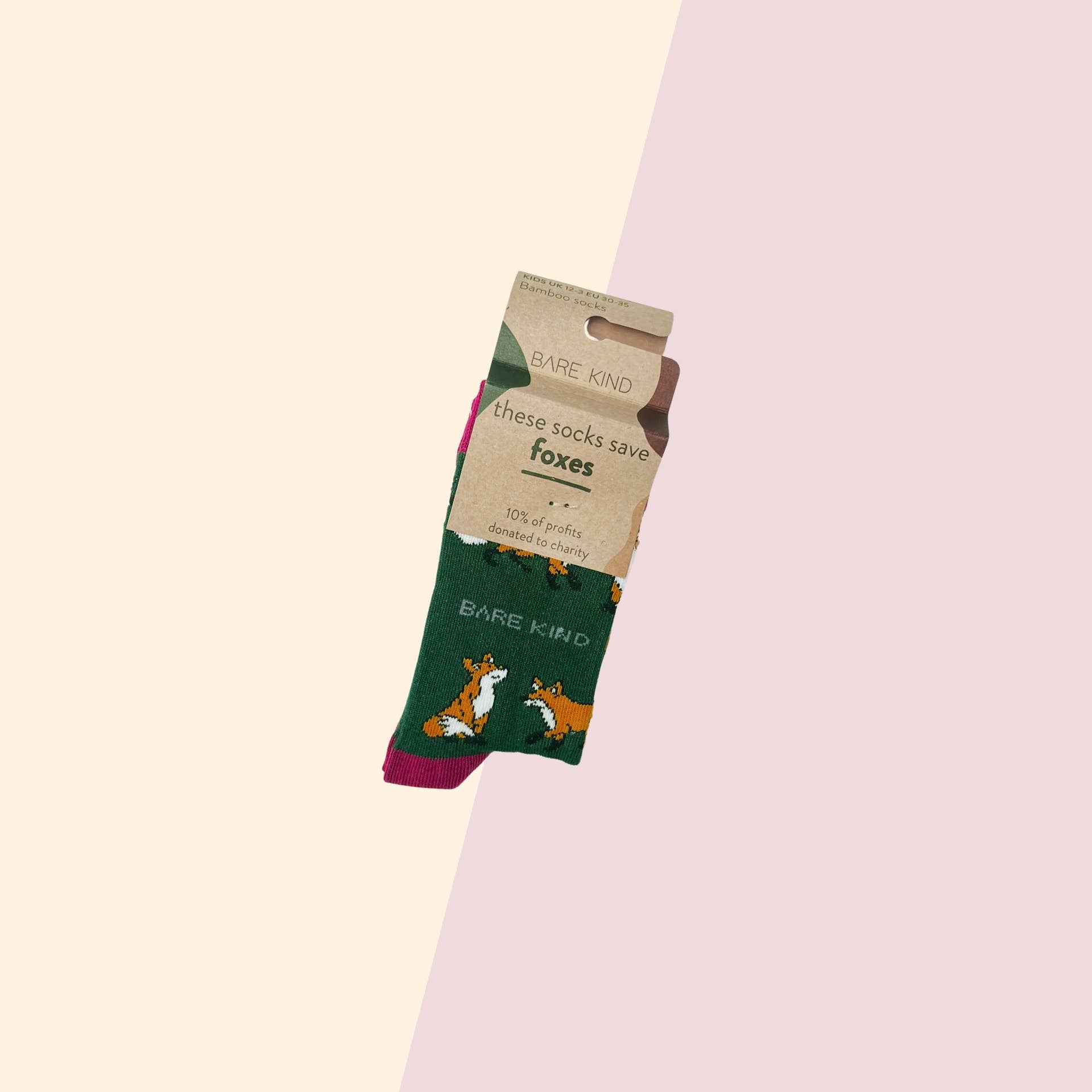 These Socks Save Foxes. with 10% of profits donated to Brent Lodge Wildlife Hospital. These socks are: * Thermoregulating (cool in summer, warm in winter) * Sweat-proof (moisture-wicking & anti-bacterial) * Softer than cotton * Wash cold for the environment (30 degrees) * OEKO-Tex Certified * SEDEX Audited * 100% Recyclable packaging Bare Kind was founded by Lucy in 2018 to save endangered animals worldwide through partnerships with Charities. These socks are part of our Farm Collection. This Collection is inspired to save farm animals that need our help These gender neutral socks are loved by all.