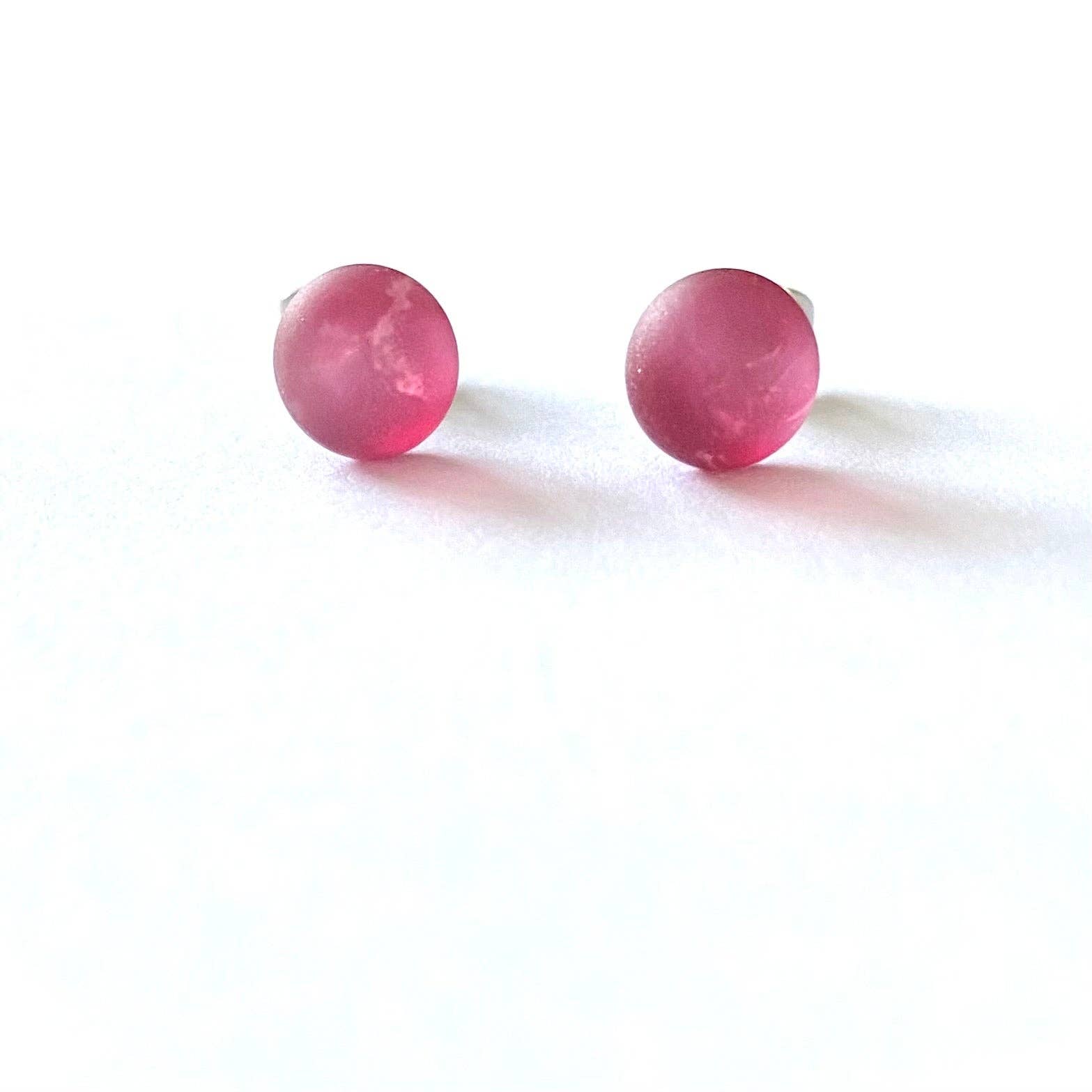 Frosted Amaranthine Handmade Glass Mini Stud Earrings