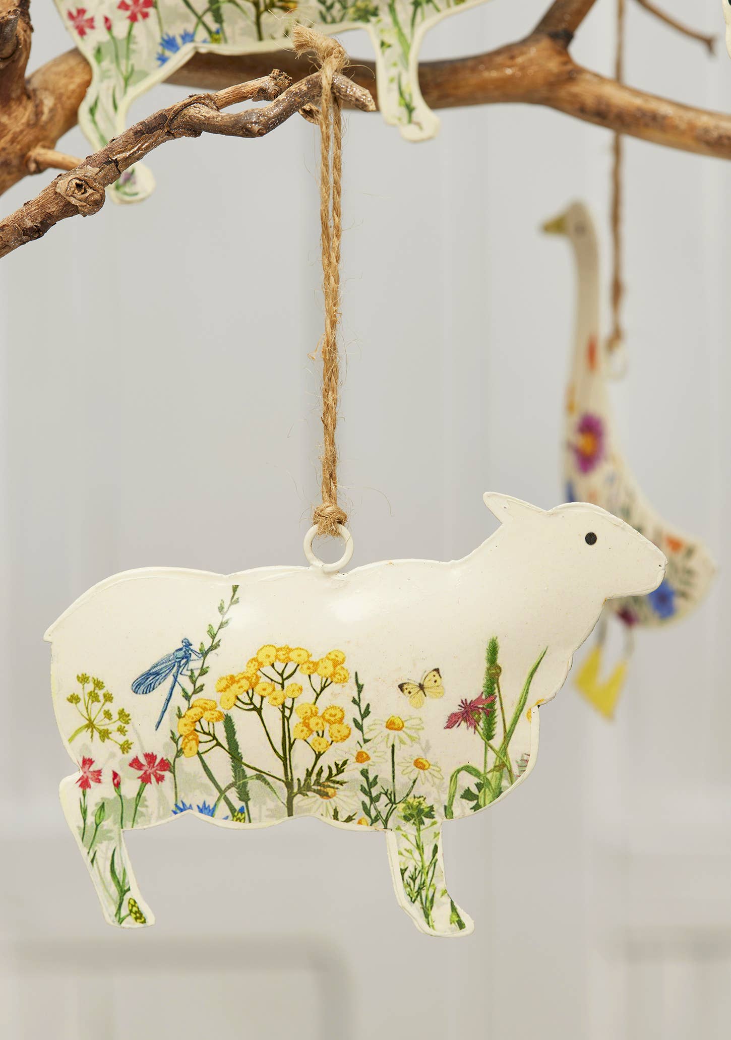 Hollow metal farm animal hanging decorations in 5 designs of a cow, pig, goose, hare and sheep. Hand painted in cream with a floral design of assorted meadow flowers on both sides, each character has little black eyes and a jute mounting string. Keep out of the reach of children. Not toys. 12 x 0.5 x 9cm. Iron. Keep away from children. Not a toy. Founded by a married couple in 1982, the small organisation initially supplied brass arts and crafts to Indian businesses. They broke into overseas markets ten years later and became a well-established exporter to the USA and Europe and endeavour to employ local artisans and inspire community cohesiveness through Fair Trade contracts.