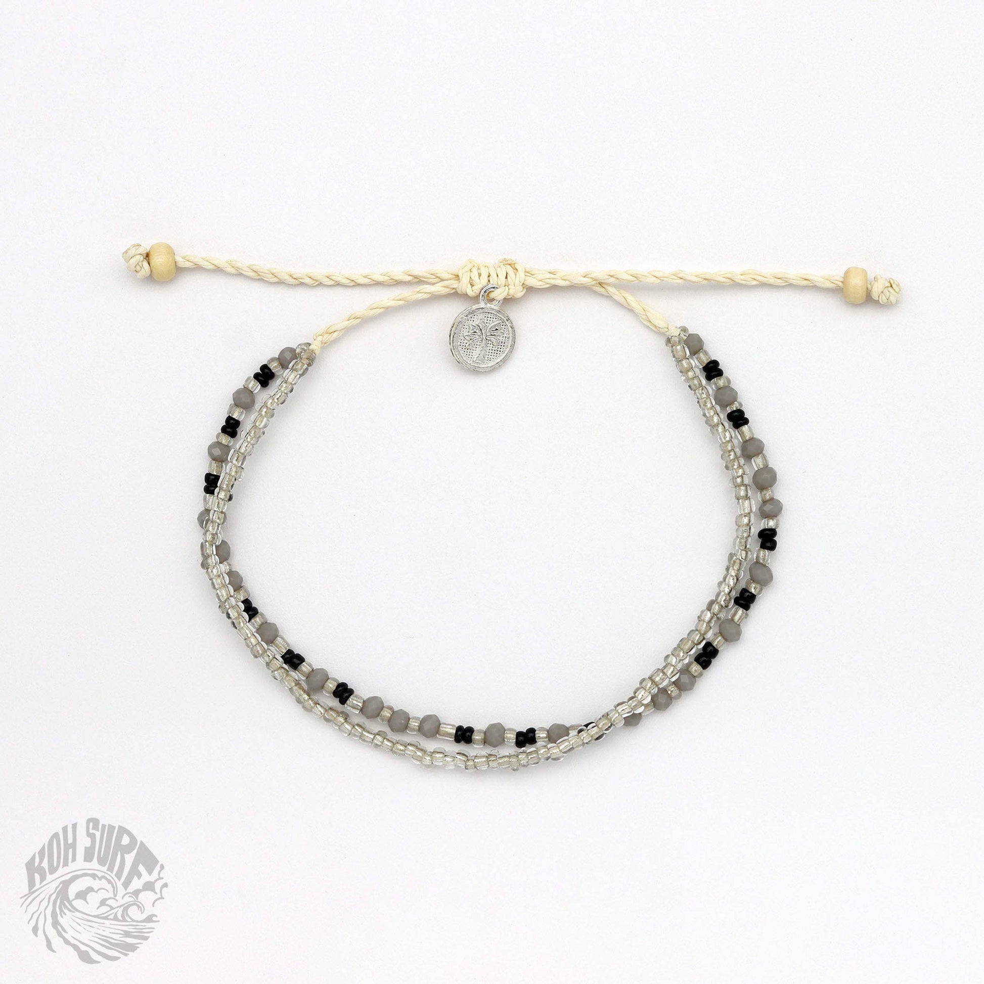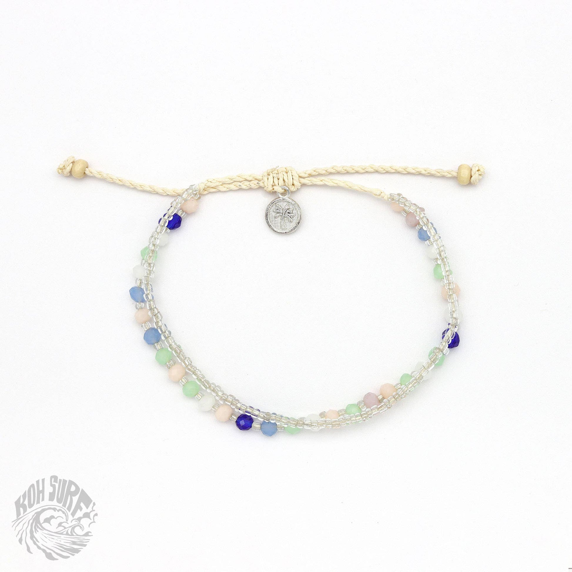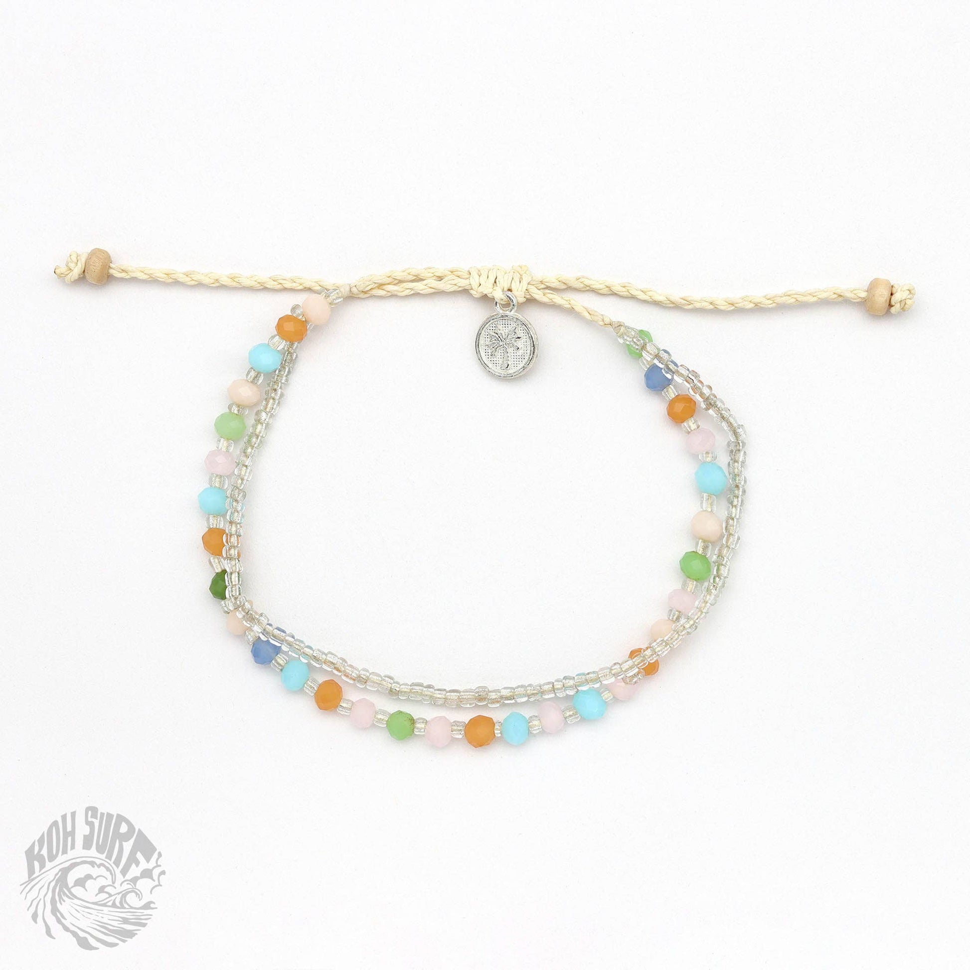 Welcome to Pineapple Island's sister brand, Koh Surf, where style meets affordability for those seeking beach style on a budget! Welcoming the Kanawa Beaded Bracelet, this best selling design has beautiful silver chains and beads to transport you to the shimmering beaches of Indonesia. Carry a bit of the ocean with you wherever your travels may lead you! - Adjustable doubled style beaded Bracelet. - Made with glass seed beads, faceted glass beads, wood beads and a wax polyester cord. - Measures approx. 17cm with a 7cm sliding knot extension. - Handmade in Bali.