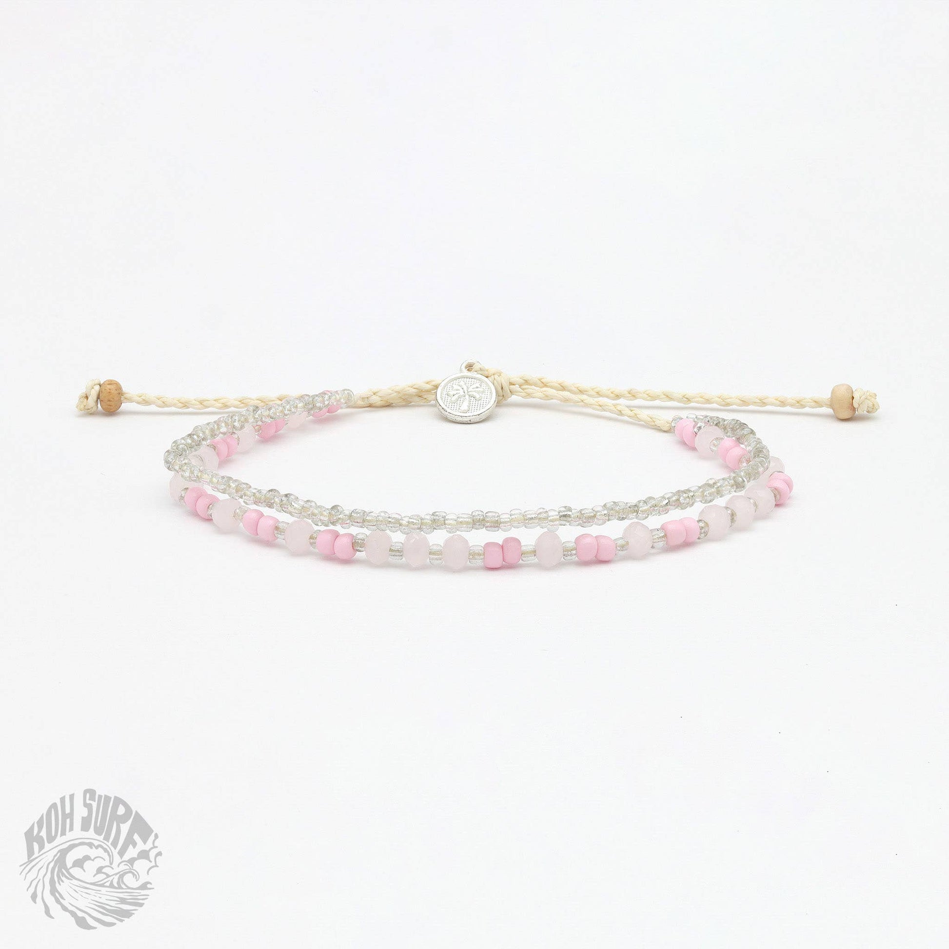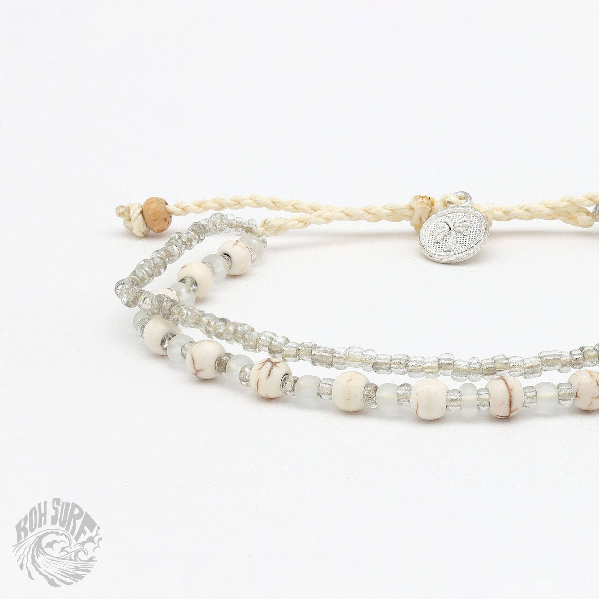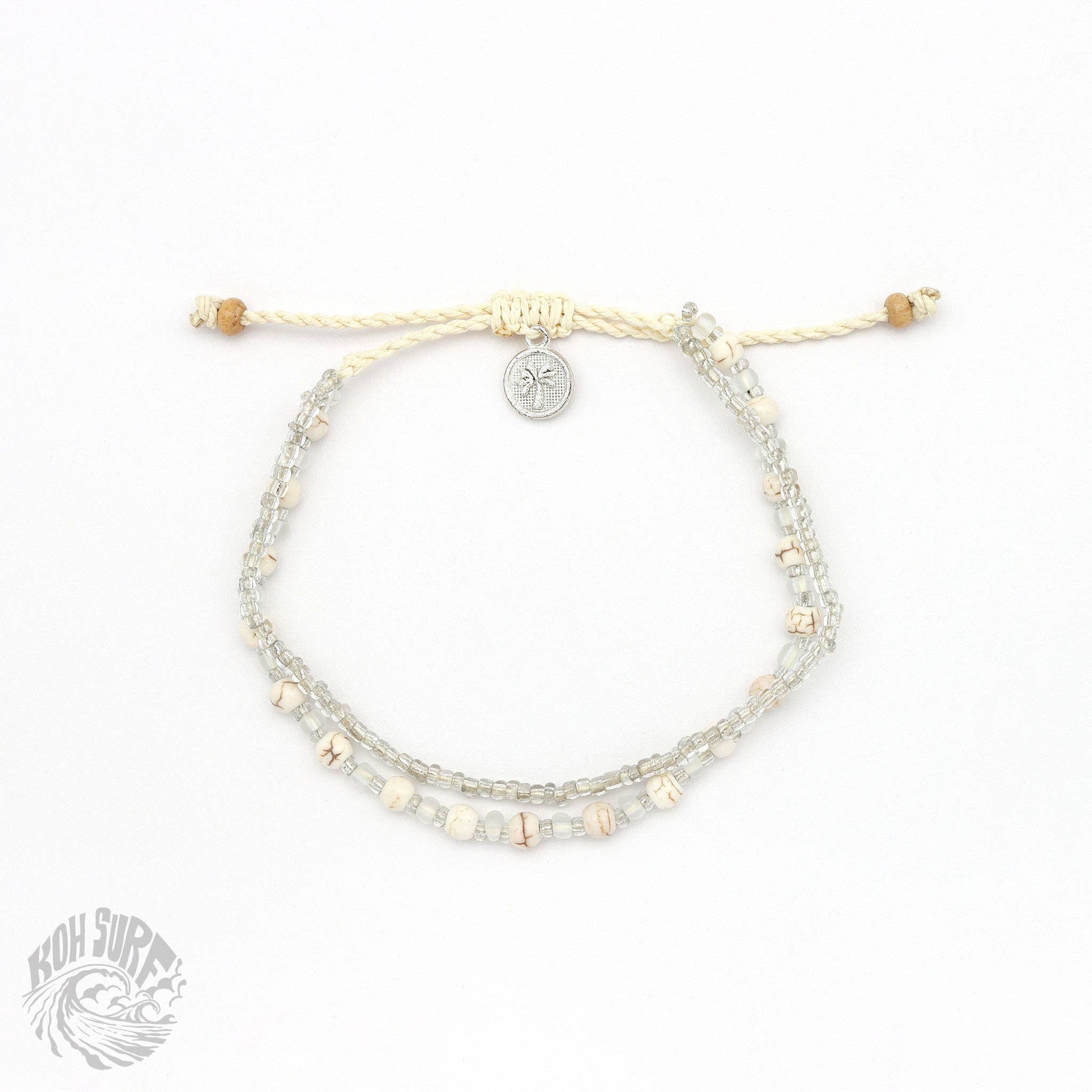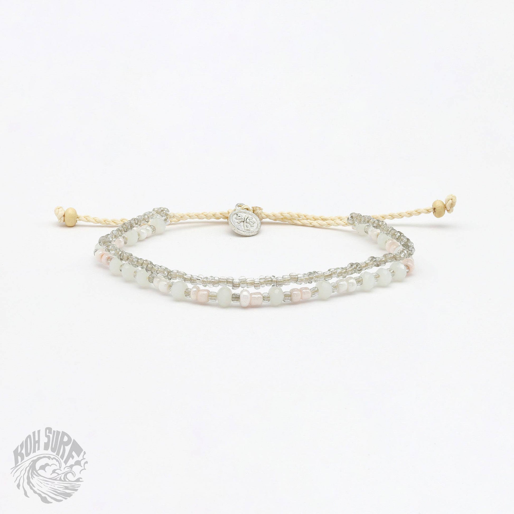 Welcome to Pineapple Island's sister brand, Koh Surf, where style meets affordability for those seeking beach style on a budget! Welcoming the Kanawa Beaded Bracelet, this best selling design has beautiful silver chains and beads to transport you to the shimmering beaches of Indonesia. Carry a bit of the ocean with you wherever your travels may lead you! - Adjustable doubled style beaded Bracelet. - Made with glass seed beads, faceted glass beads, wood beads and a wax polyester cord. - Measures approx. 17cm with a 7cm sliding knot extension. - Handmade in Bali.