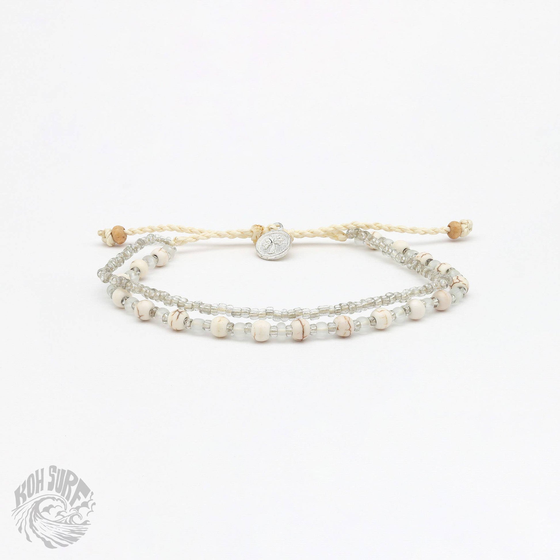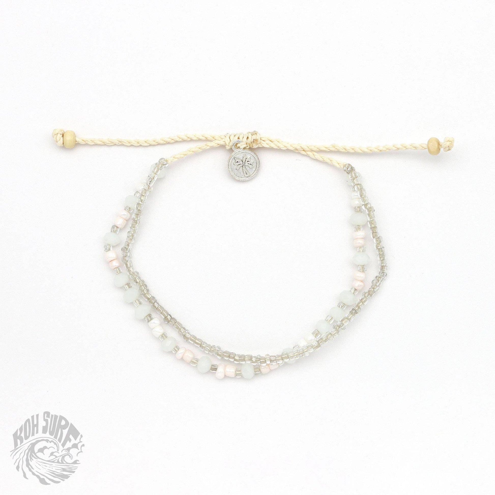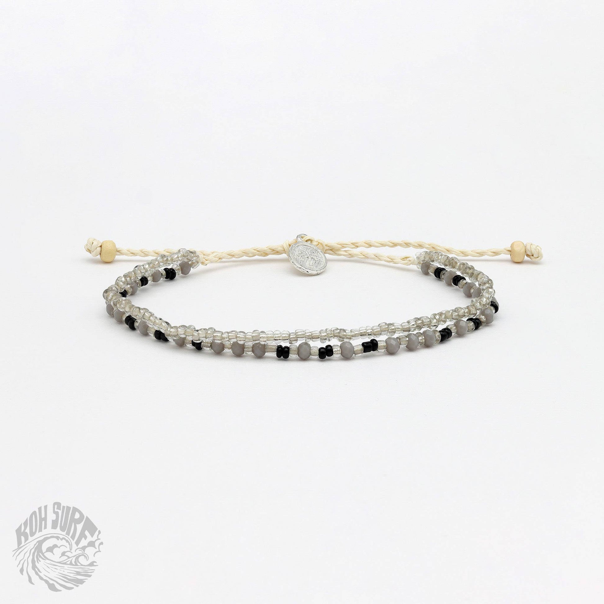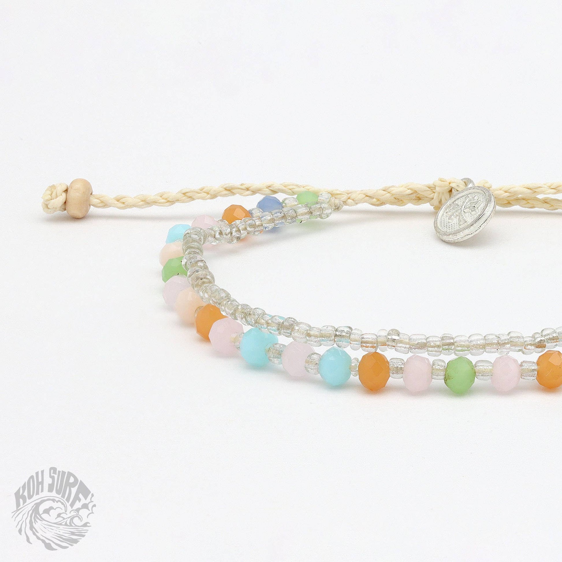 Welcome to Pineapple Island's sister brand, Koh Surf, where style meets affordability for those seeking beach style on a budget! Welcoming the Kanawa Beaded Bracelet, this best selling design has beautiful silver chains and beads to transport you to the shimmering beaches of Indonesia. Carry a bit of the ocean with you wherever your travels may lead you! - Adjustable doubled style beaded Bracelet. - Made with glass seed beads, faceted glass beads, wood beads and a wax polyester cord. - Measures approx. 17cm with a 7cm sliding knot extension. - Handmade in Bali.