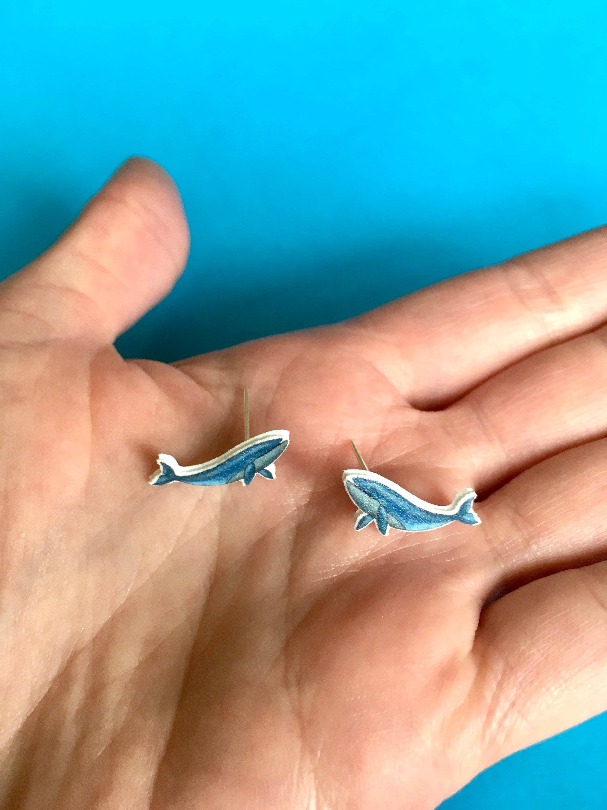 This little blue whale earring set has been digitally doodled, printed and finished in Yorkshire. Each set of earrings may also differ slightly from the ones pictured. Please note all earring studs are "silver plated".