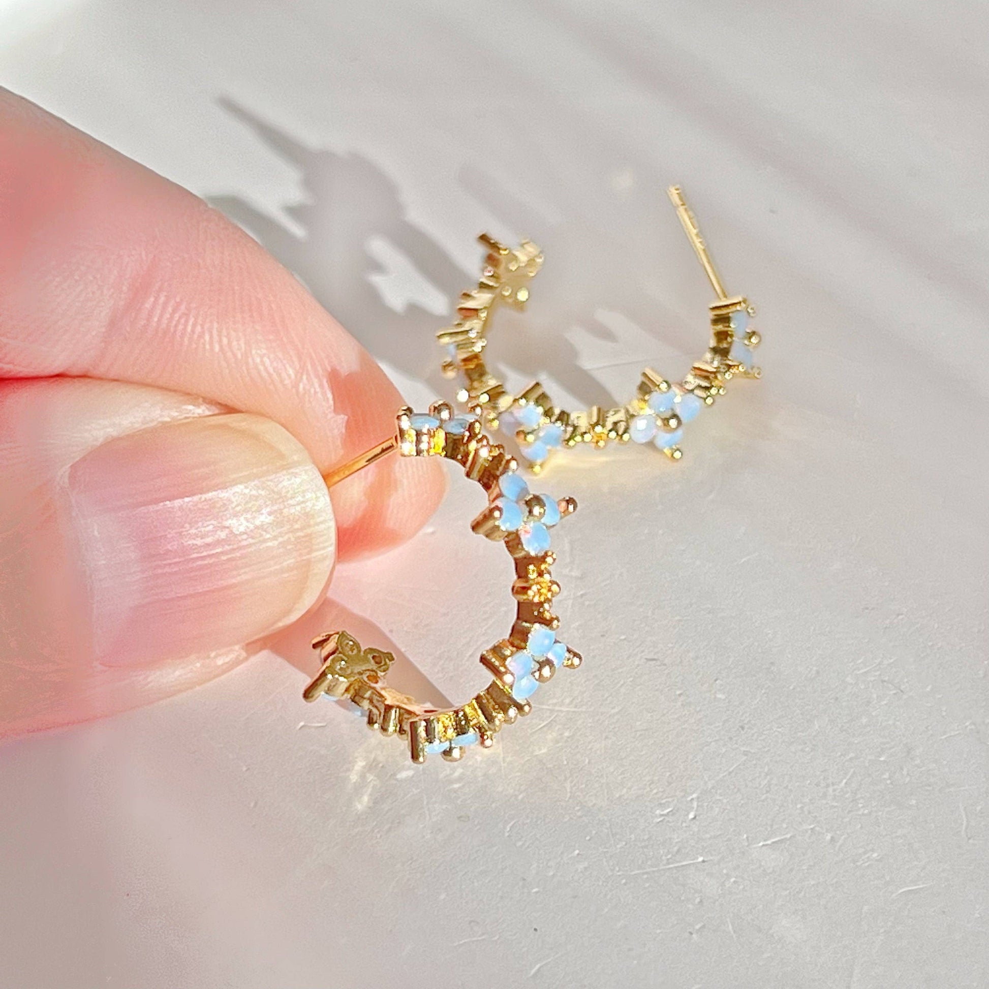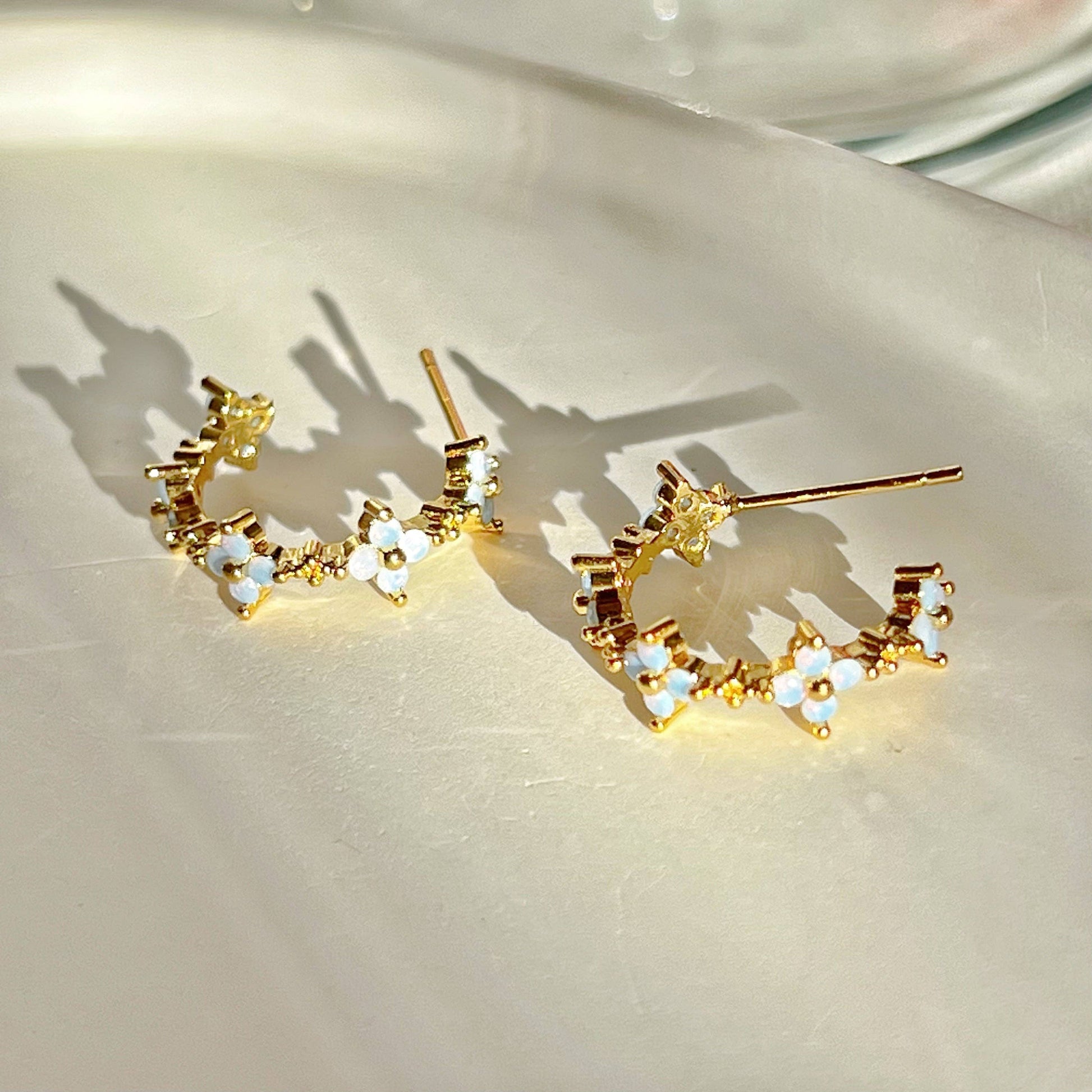 Ninaouity - Mini Opal Flowers in Half Hoop Earrings