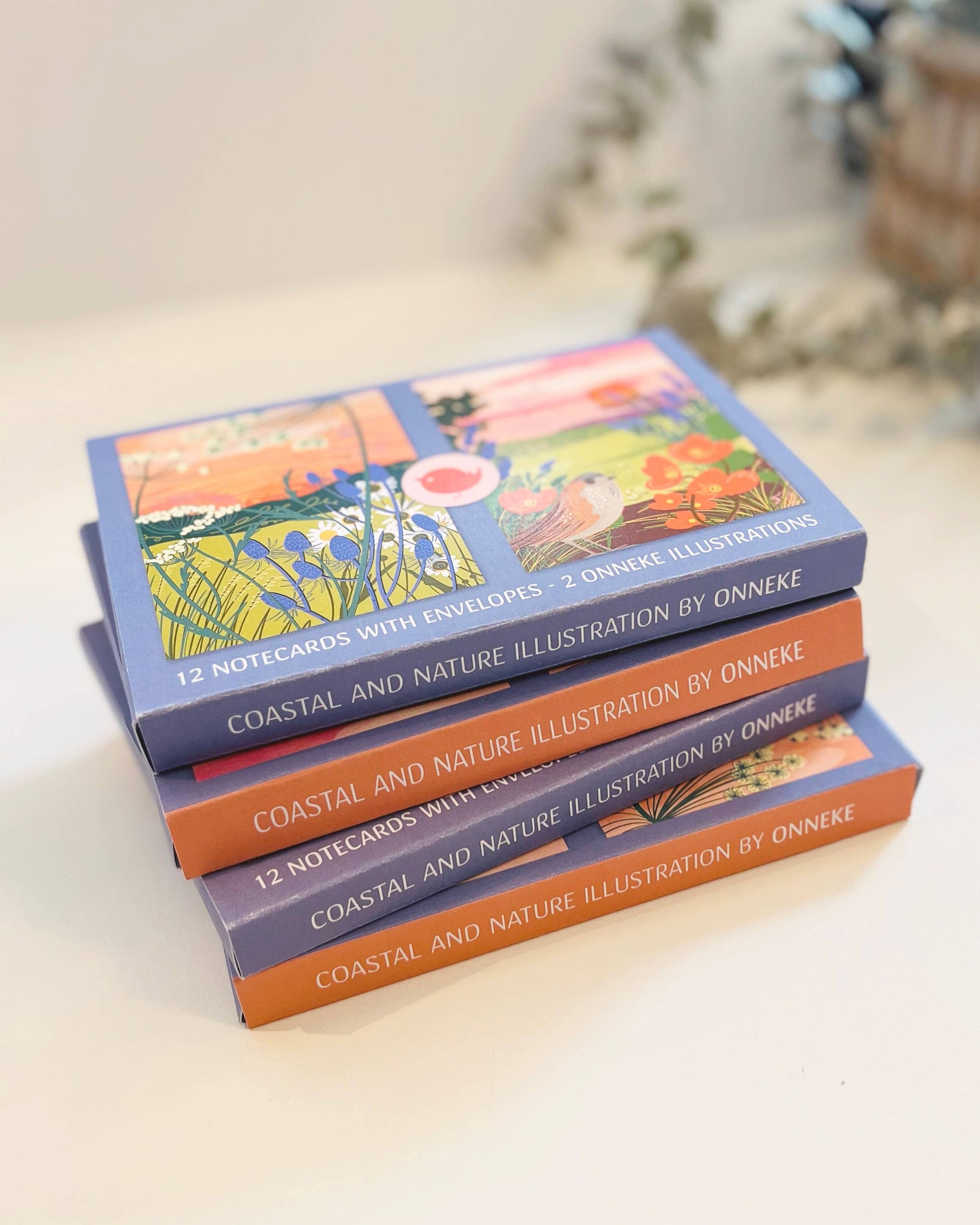 A beautifully presented pack of 12 notecards with envelopes, featuring 2 original Onneke illustrations inspired by the quiet beauty of flowers in bloom. Perfect for writing thank you notes, birthday wishes, or thoughtful little messages, these versatile cards are ideal for keeping in stock all year round.
