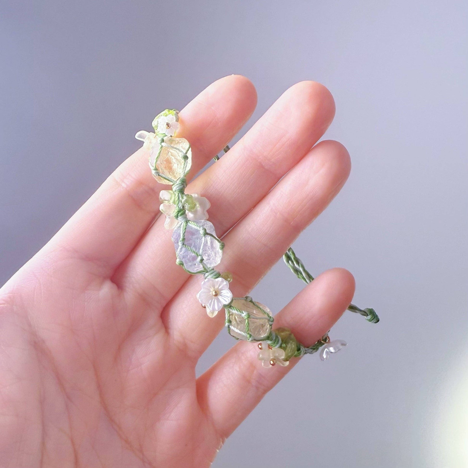 Solar Plexus Chakra Citrine and Peridot Crystal Handmade Macrame Bracelet. Find your inner calm with this Quartzberry bracelet, handmade with raw citrine and peridot crystal. Perfect as a gift or for yourself, the healing properties of these crystals will help promote balance and harmony within your solar plexus chakra. Embrace a peaceful state of mind with this unique macrame design. Details: Crystal - natural raw citrine, peridot, and clear quartz crystal (vary slightly in shape and size) Length - adjustable from 13cm to 20cm Note: All Quartzberry jewellery pieces are handmade locally in the UK and with only one or few pieces available. The Solar Plexus Chakra Citrine and Peridot Crystal Handmade Macrame Bracelet is made from natural crystal which could have tiny cracks, clouds, and tiny black spots, which is part of the beauty of nature!