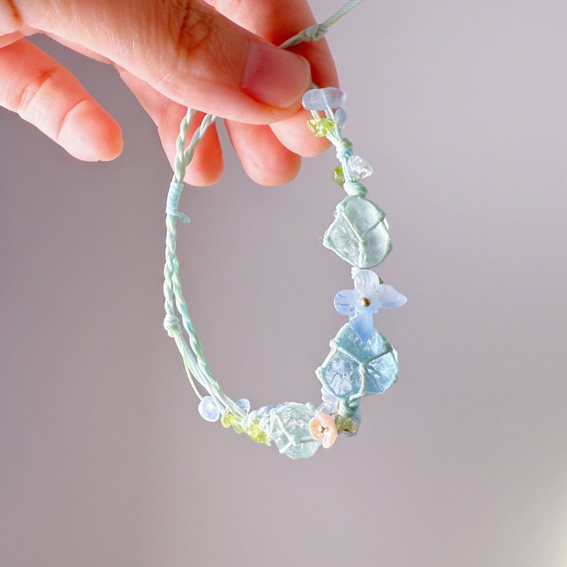 Ninaouity - - Throat and Heart Chakra Aquamarine Crystal and Butterfly Handmade Macrame Bracelet