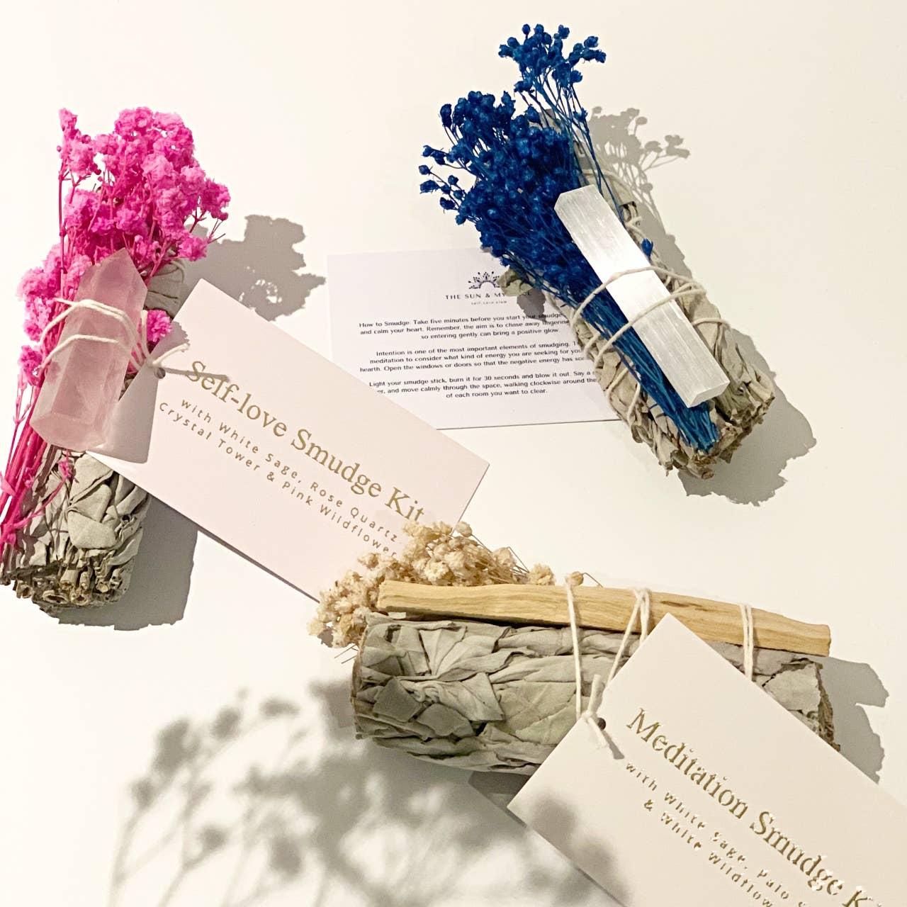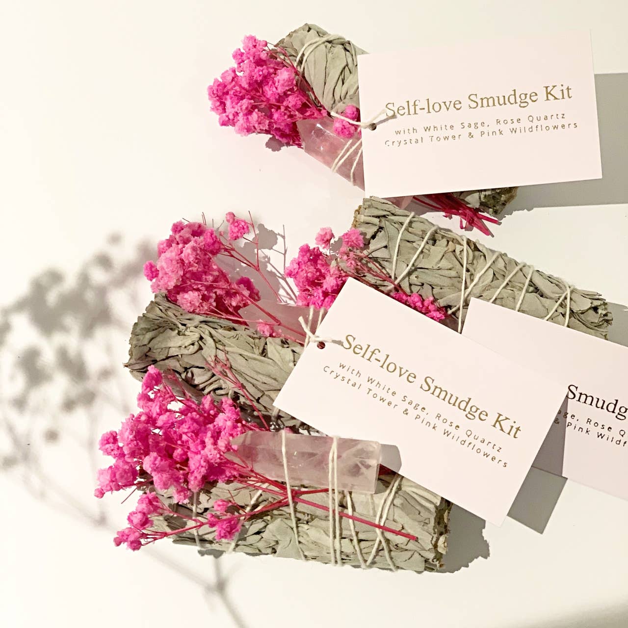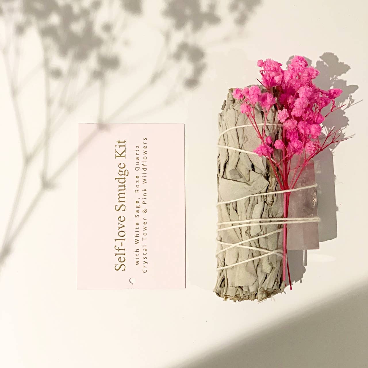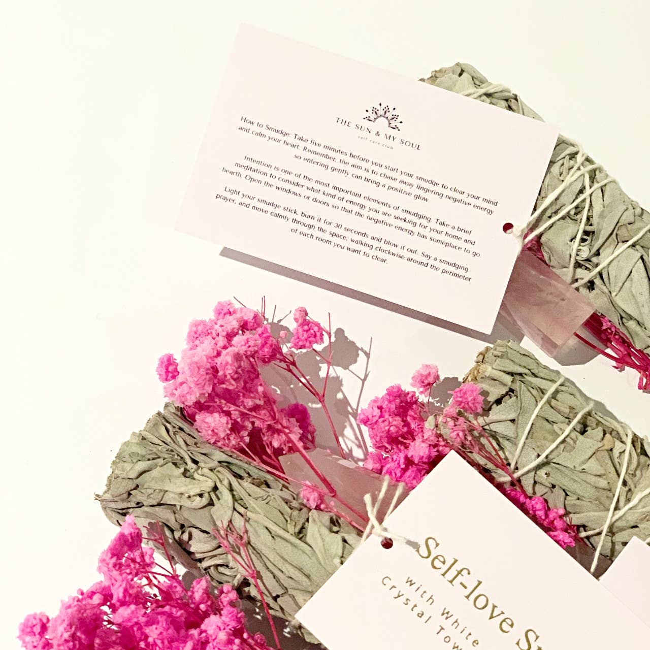 The Sun & My Soul Self-love Smudge Kit - White Sage Smudge, Rose Quartz Tower