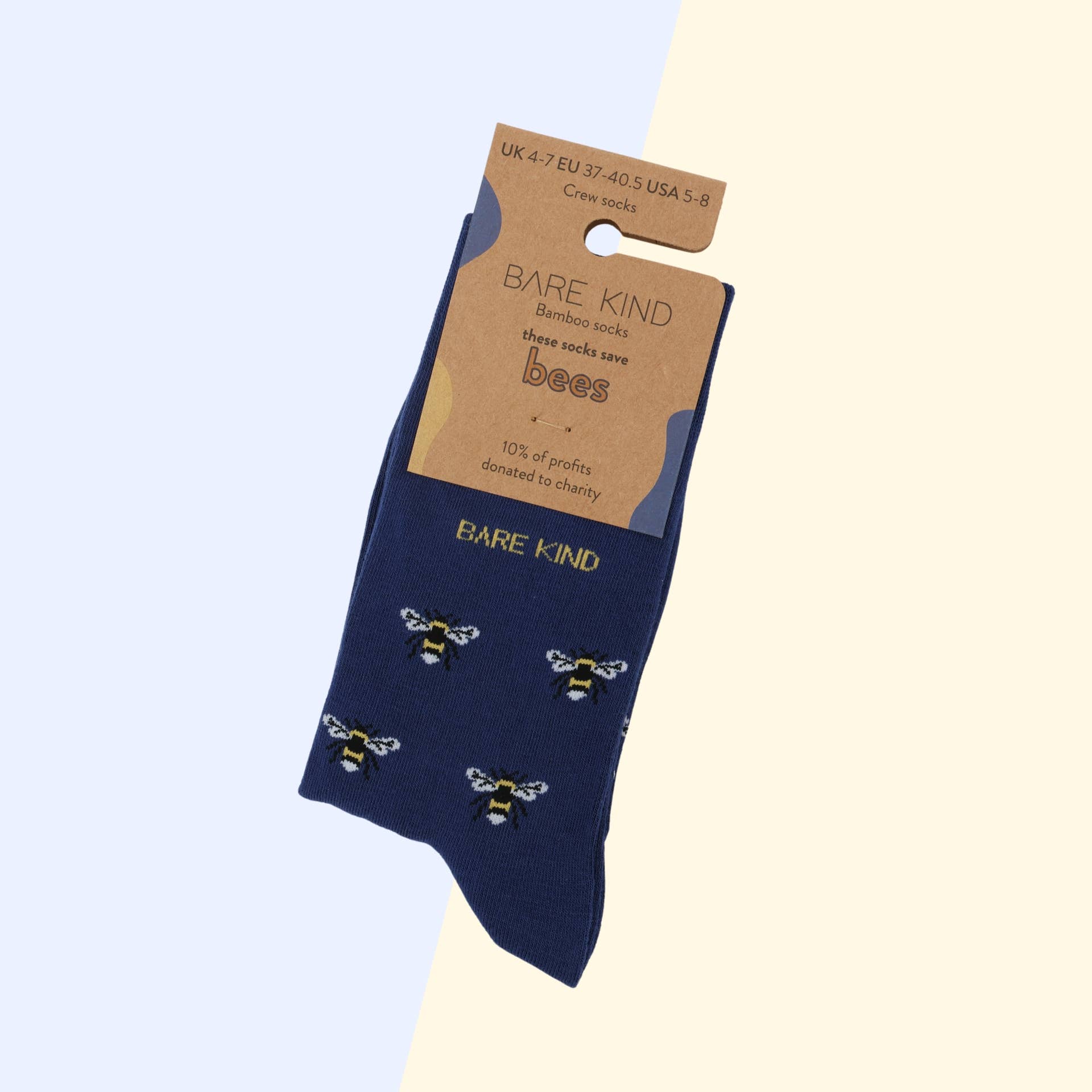 These Socks Save Bees with 10% of profits donated to the Bumblebee Conservation Trust Our socks are: * Thermoregulating (cool in summer, warm in winter) * Sweat-proof (moisture-wicking & anti-bacterial) * Softer than cotton * Wash cold for the environment * OEKO-Tex Certified * SEDEX Audited * 100% Recyclable packaging Bare Kind was founded by Lucy in 2018 to save endangered animals worldwide through partnerships with Charities. These gender neutral socks are loved by all.