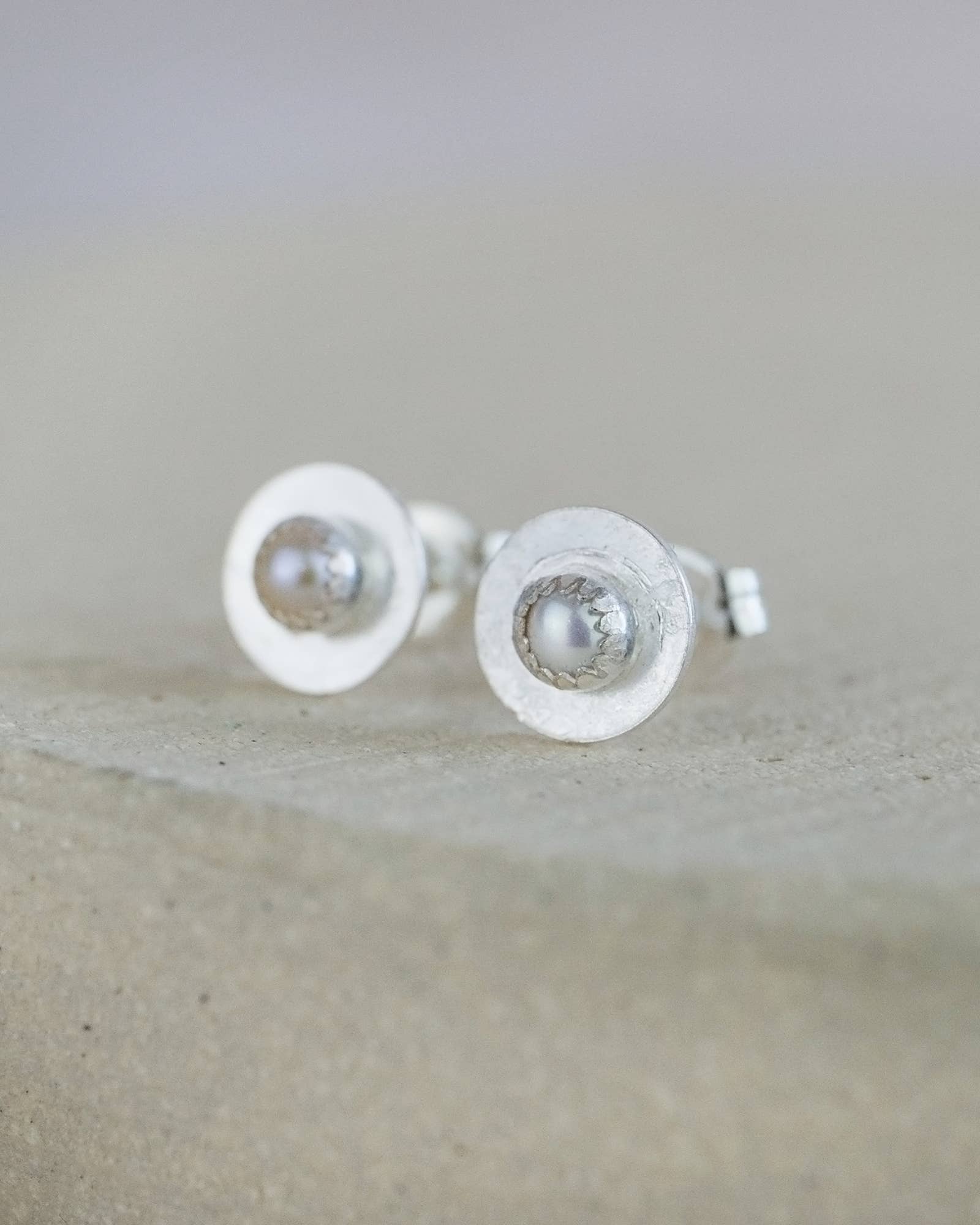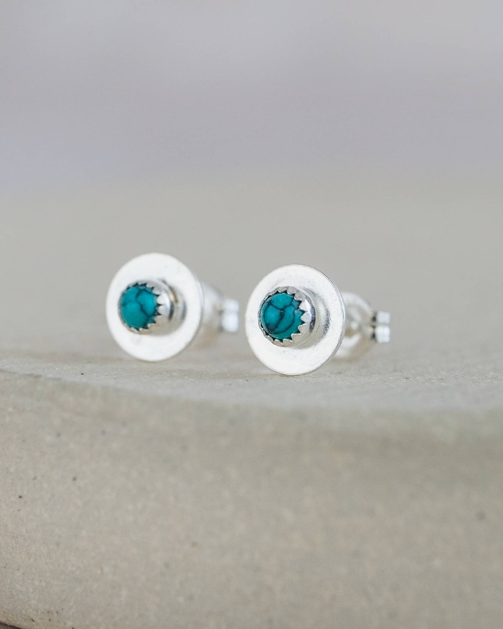 Handmade sterling silver boho disc studs which features a semi precious of your choice and are perfect for everyday wear.
