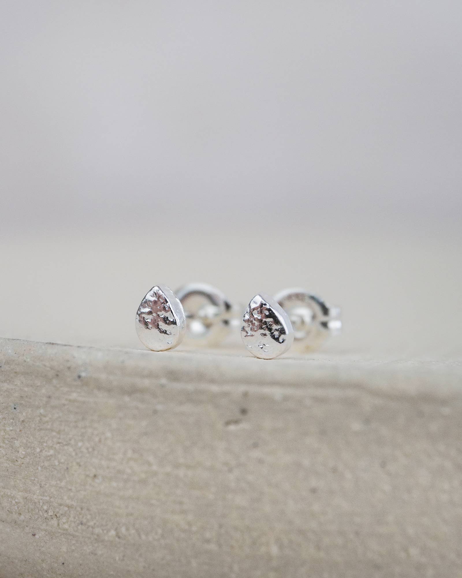 Handmade sterling silver mini Teardrop studs are hand cut and delicately textured and are perfect for everyday wear. Each sterling silver mini teardrop stud measures approximately 3-4mm. All jewellery is handmade using recycled sterling silver where possible.