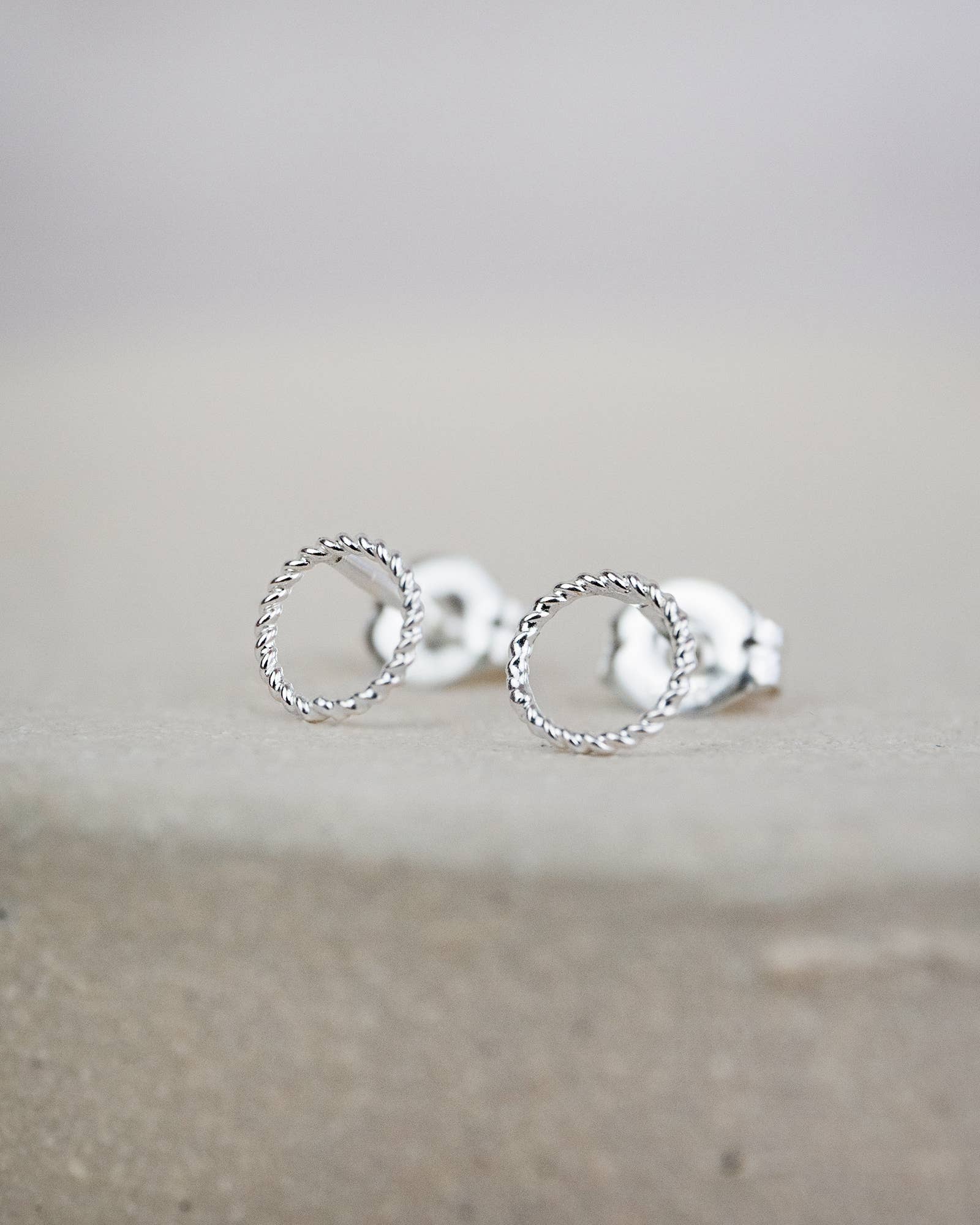 A Handmade Sterling Silver Mini Twisty Studs, a geo circle shaped from twisty wire, complete with Sterling Silver backs. Each sterling silver mini twisty stud measures approximately 5mm. All jewellery is handmade using recycled sterling silver where possible.