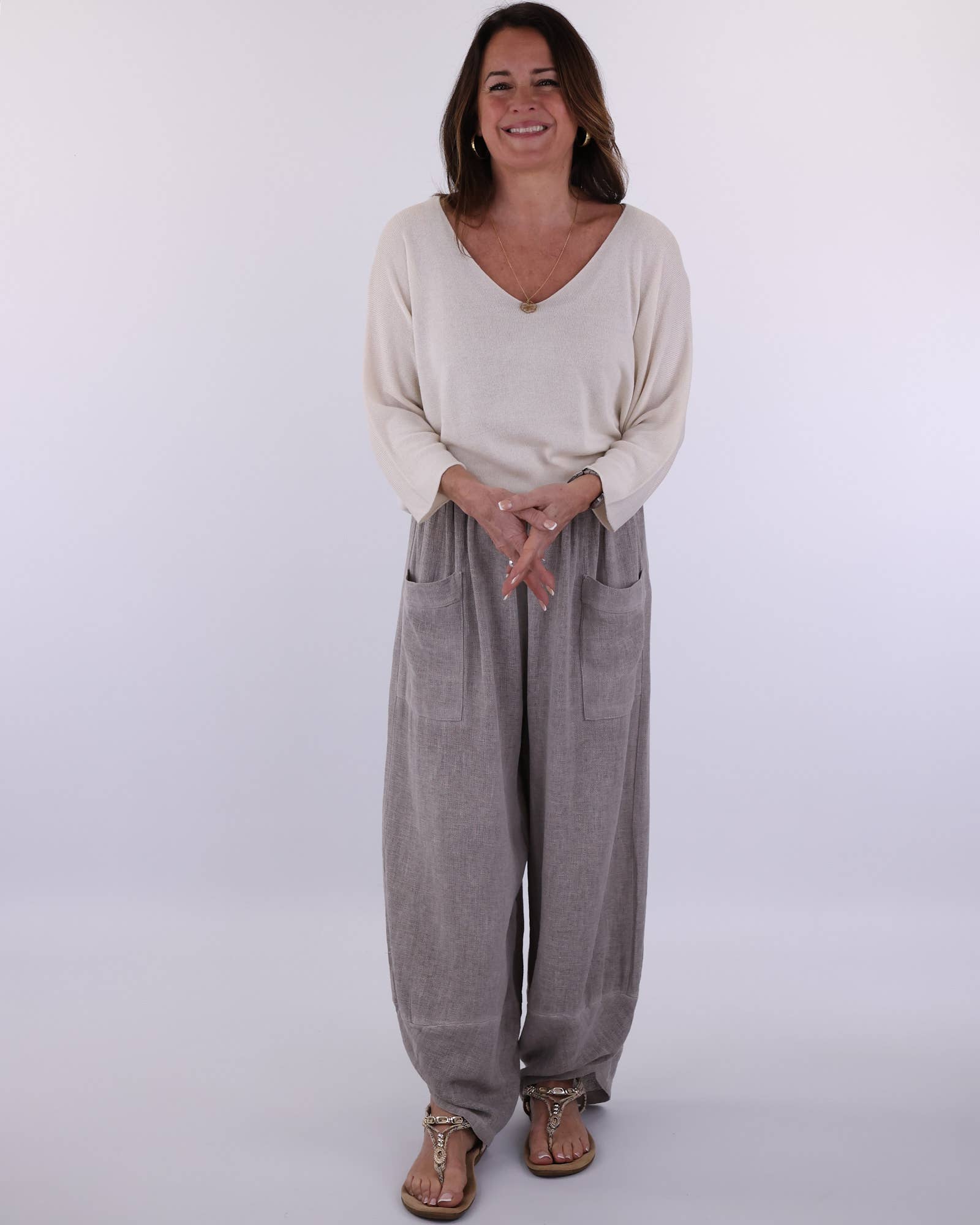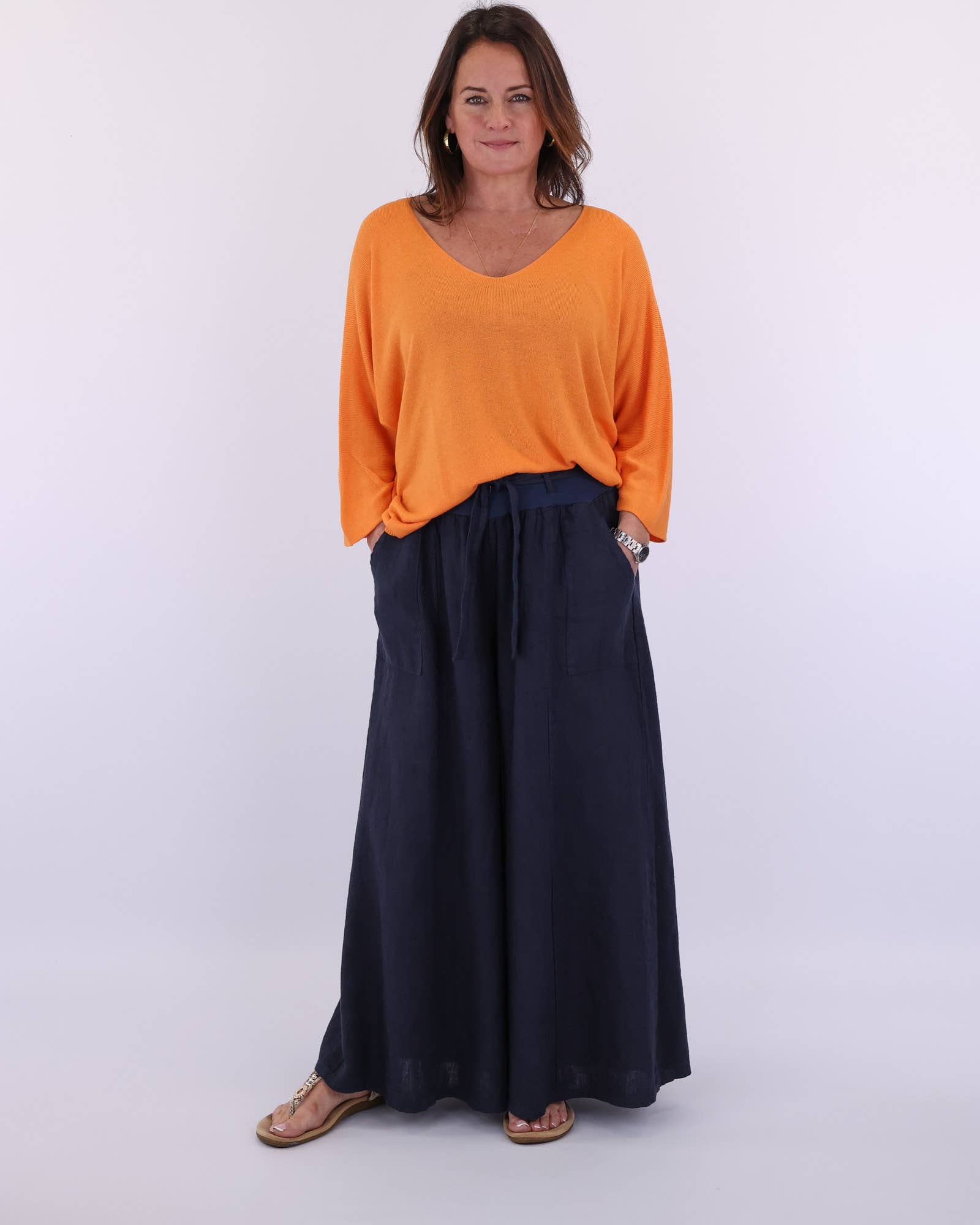 In a super soft modal blend with a lovely drape, this lightweight Summer knit top comes in a range of colours to complement your Summer wardrobe. The V-neck and three-quarter length sleeve make this a smart alternative to a traditional T-shirt. Team with linen flared trousers for a super smart-casual look! Size One size fits UK 10 - 16 Length from back of neck to hem 53cm Fabric 55% Modal, 45% Acrylic Care Instructions Wash by hand or machine wash at 30C on a cycle that is suitable for delicate woollens, using a fabric soap recommended for wool. Short spin and reshape whilst damp. Dry flat, or if this isn't possible hang over a thick towel on an airer. A few shots of steam once dry will remove any wrinkles. Do not touch the garment with the iron when steaming! Made in Italy
