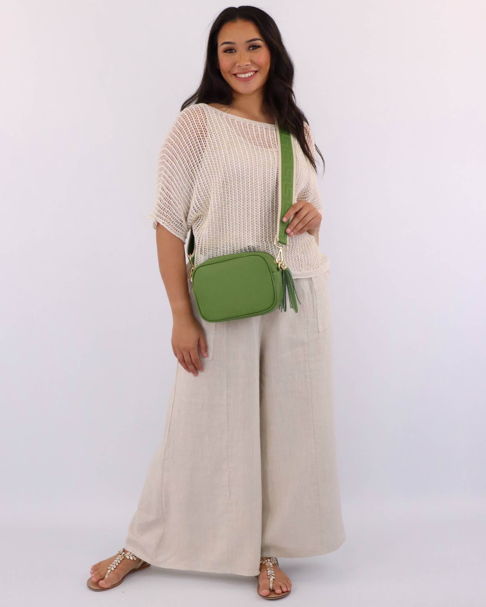 The latest crossbody bag everyone wants! Made in Italy from genuine leather, It comes with its own removable self-coloured leather strap. Customise to suit your mood with one of our colourful interchangeable bag straps! (Please note the fabric straps are for illustration only and can be purchased separately).