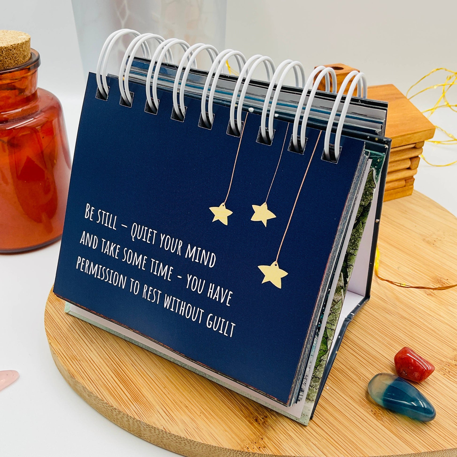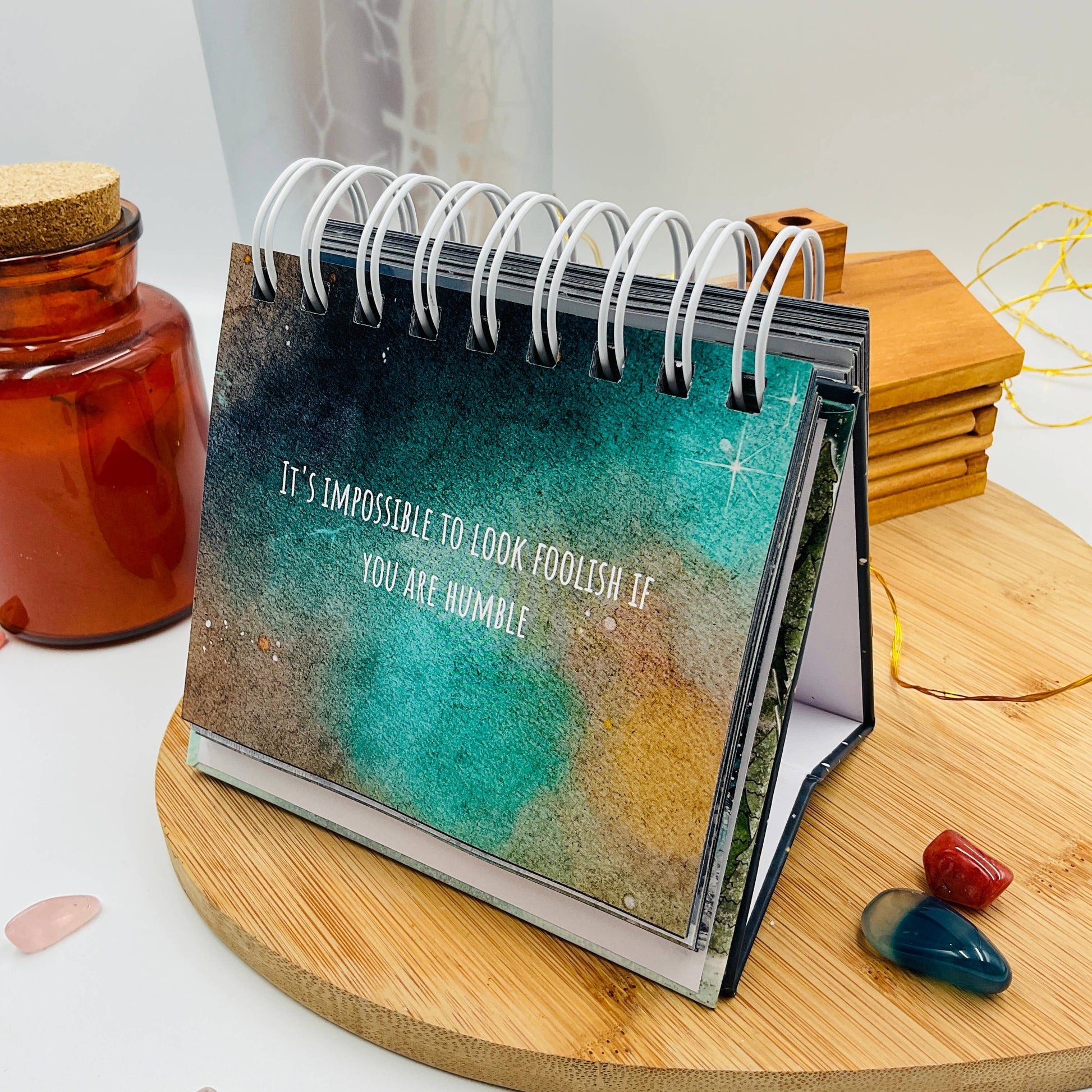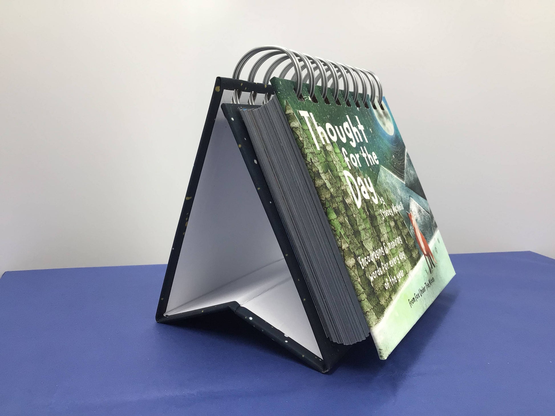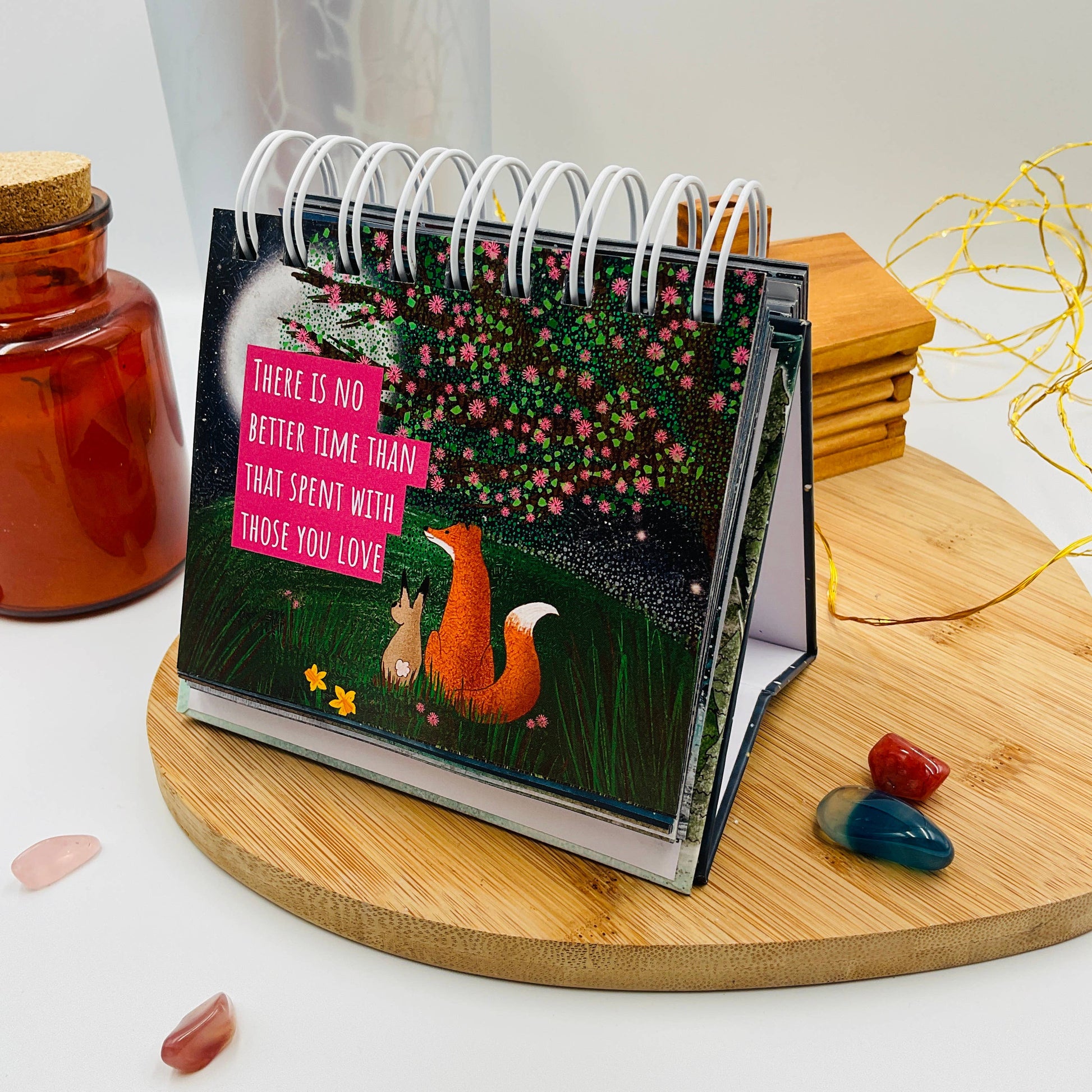 This high quality, wire-bound desktop book comes on it's own stand, so it will stand freely on a desk, table or shelf, and has an uplifting message and piece of artwork for every day of the year - including leap years!