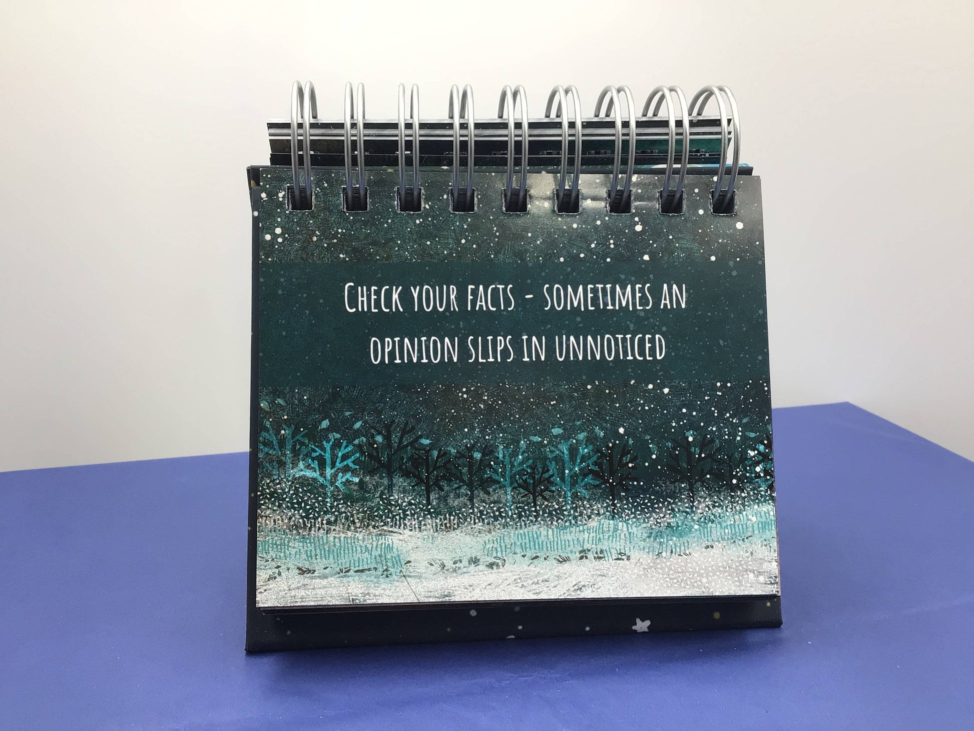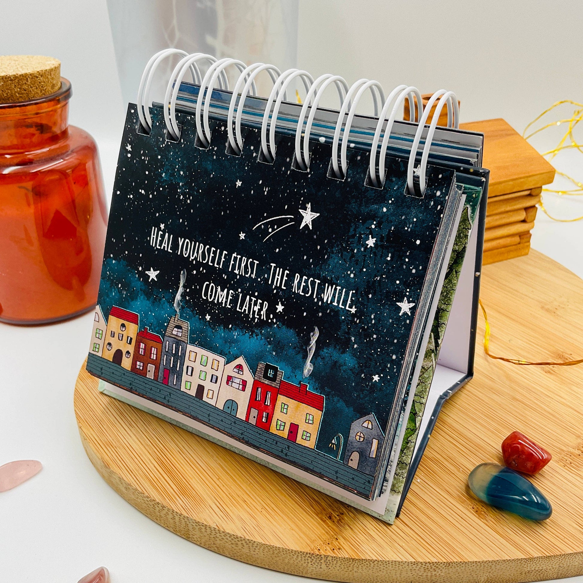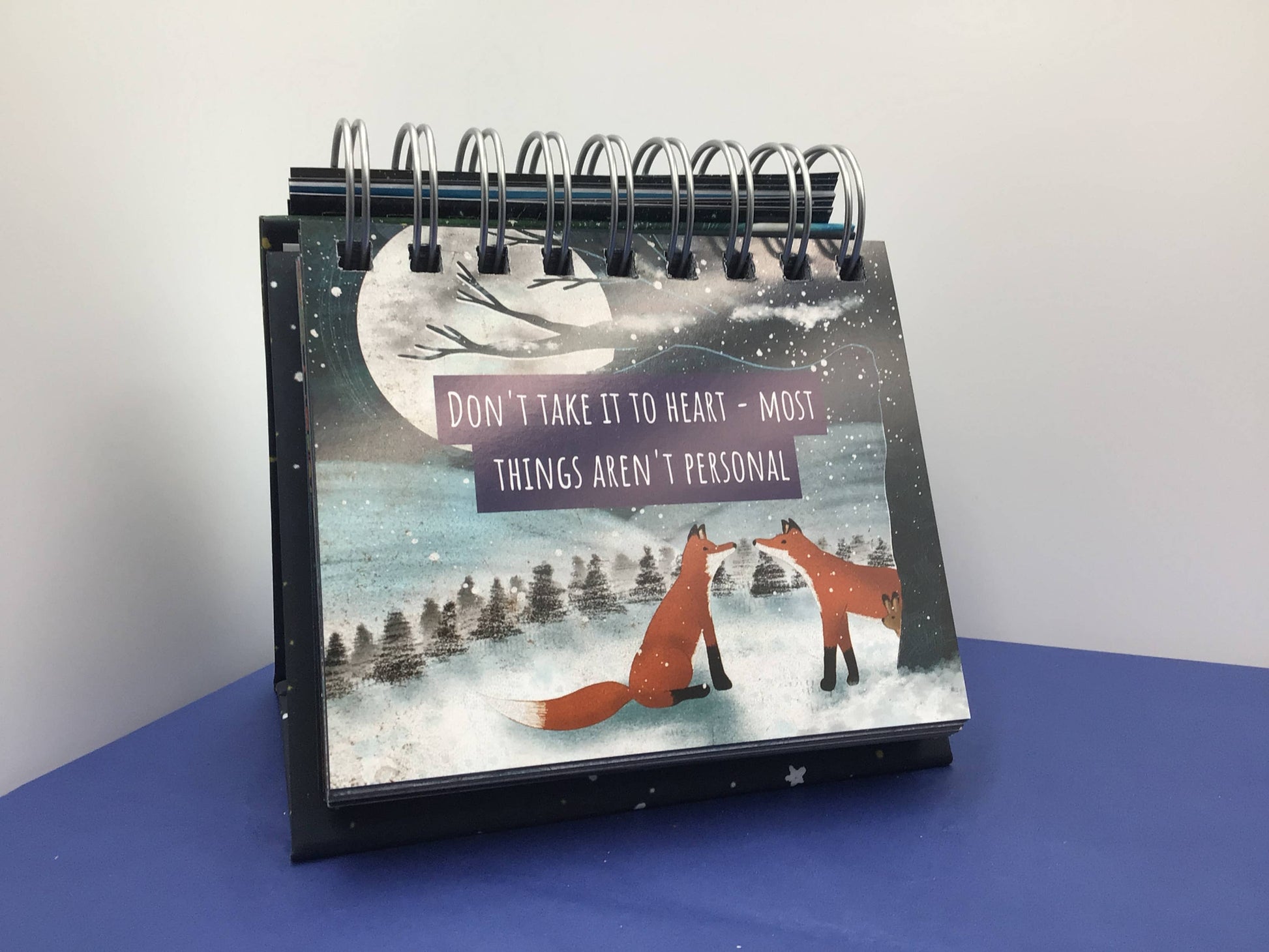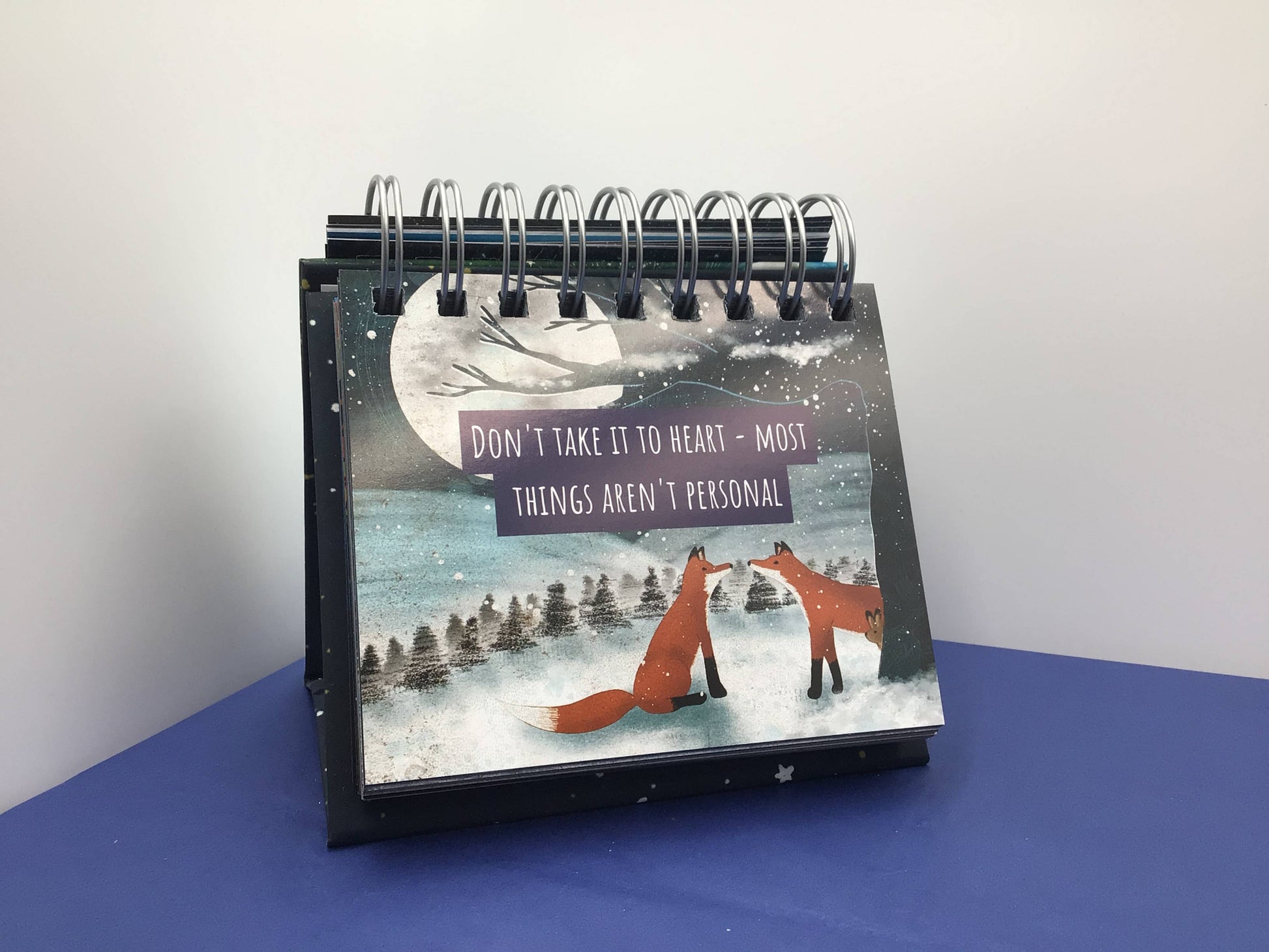 This high quality, wire-bound desktop book comes on it's own stand, so it will stand freely on a desk, table or shelf, and has an uplifting message and piece of artwork for every day of the year - including leap years!