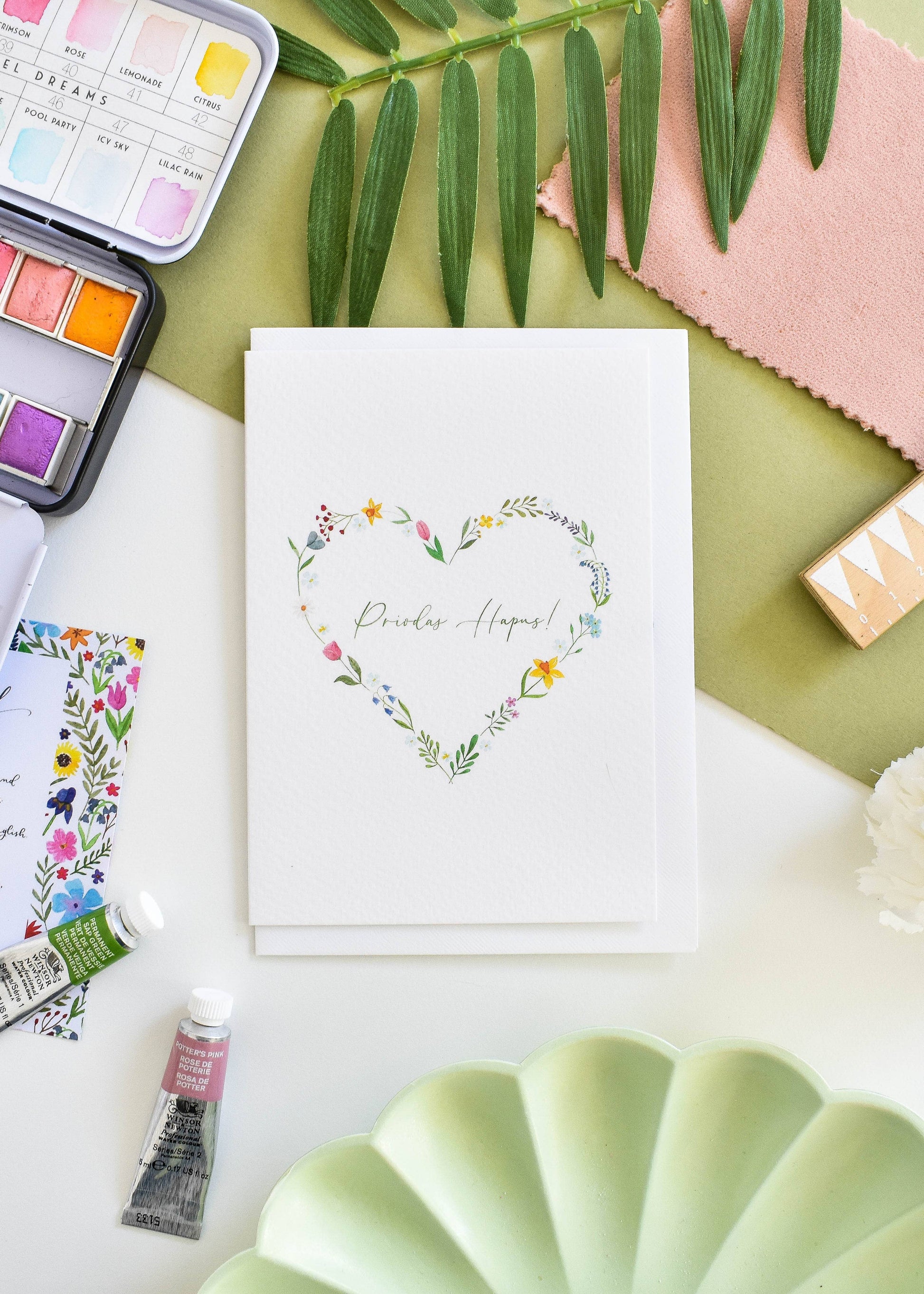 A beautiful, watercolour floral heart surrounds the words "Priodas Hapus” (“Happy Wedding Day” in Welsh)