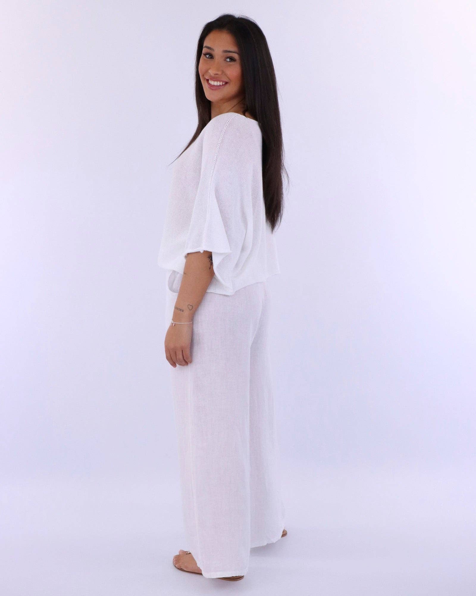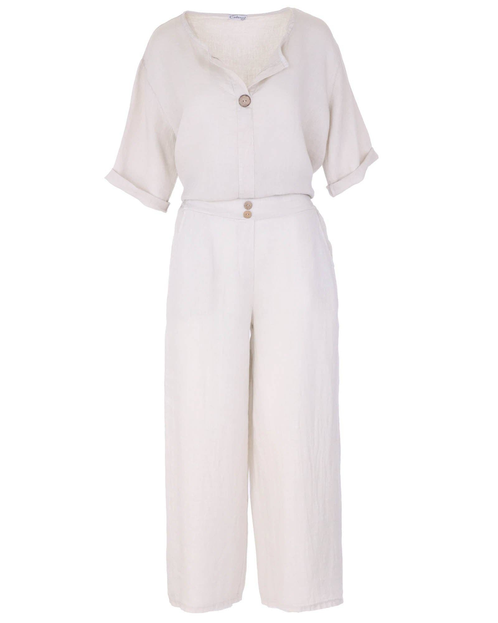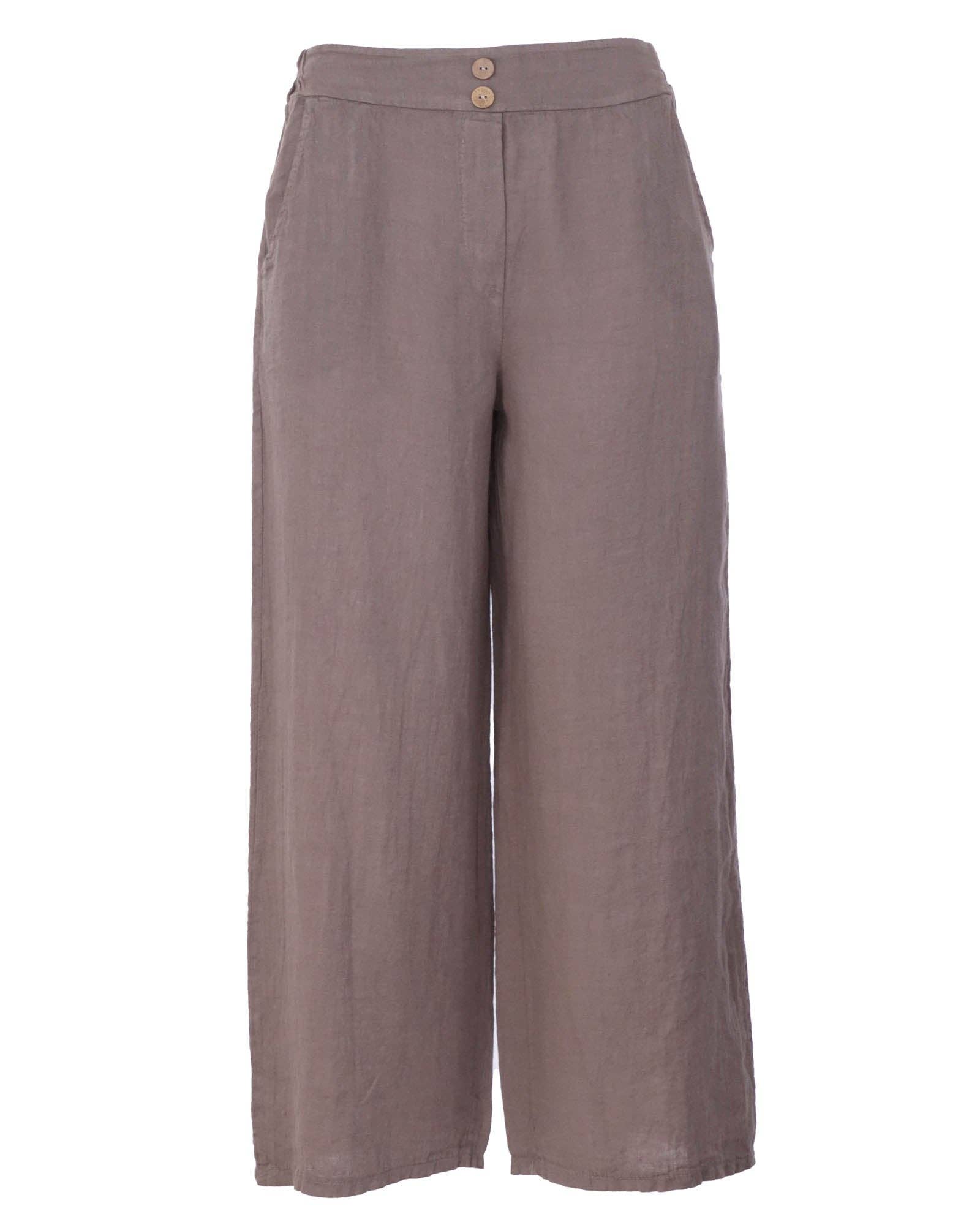 Cadenza Wide Straight Leg Linen Trousers: One Size