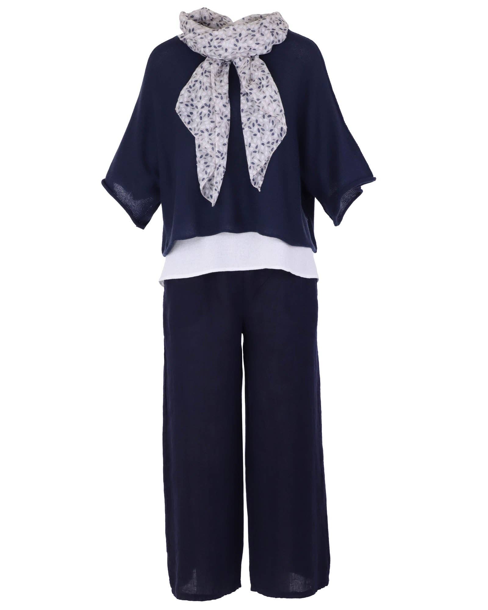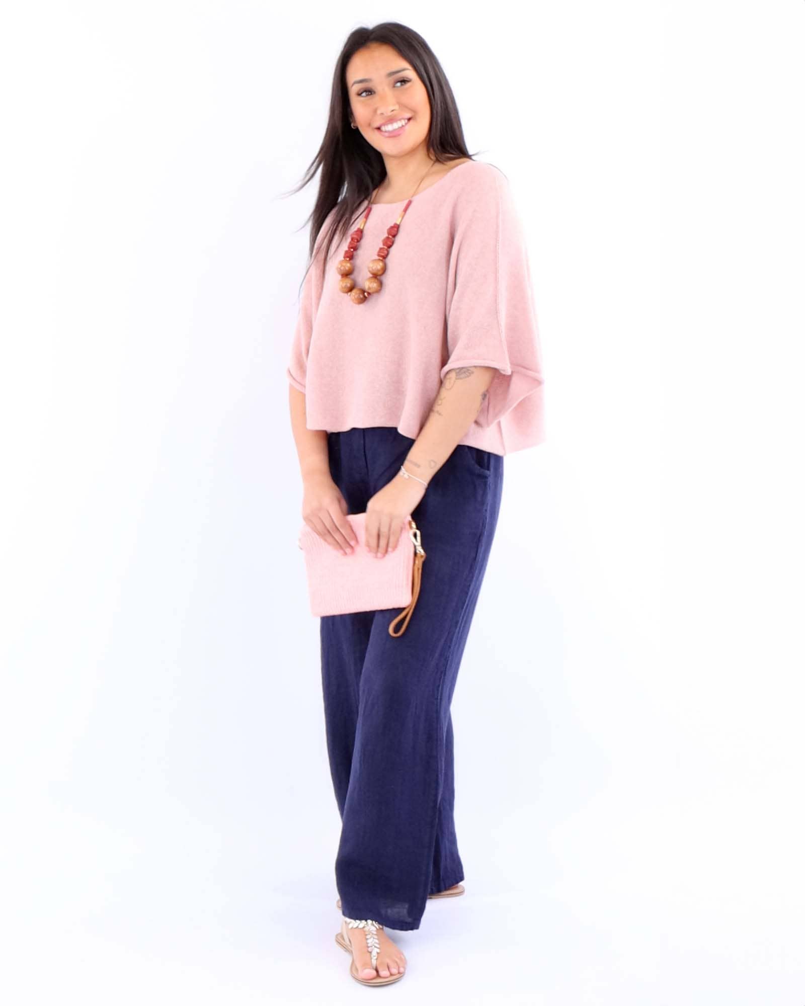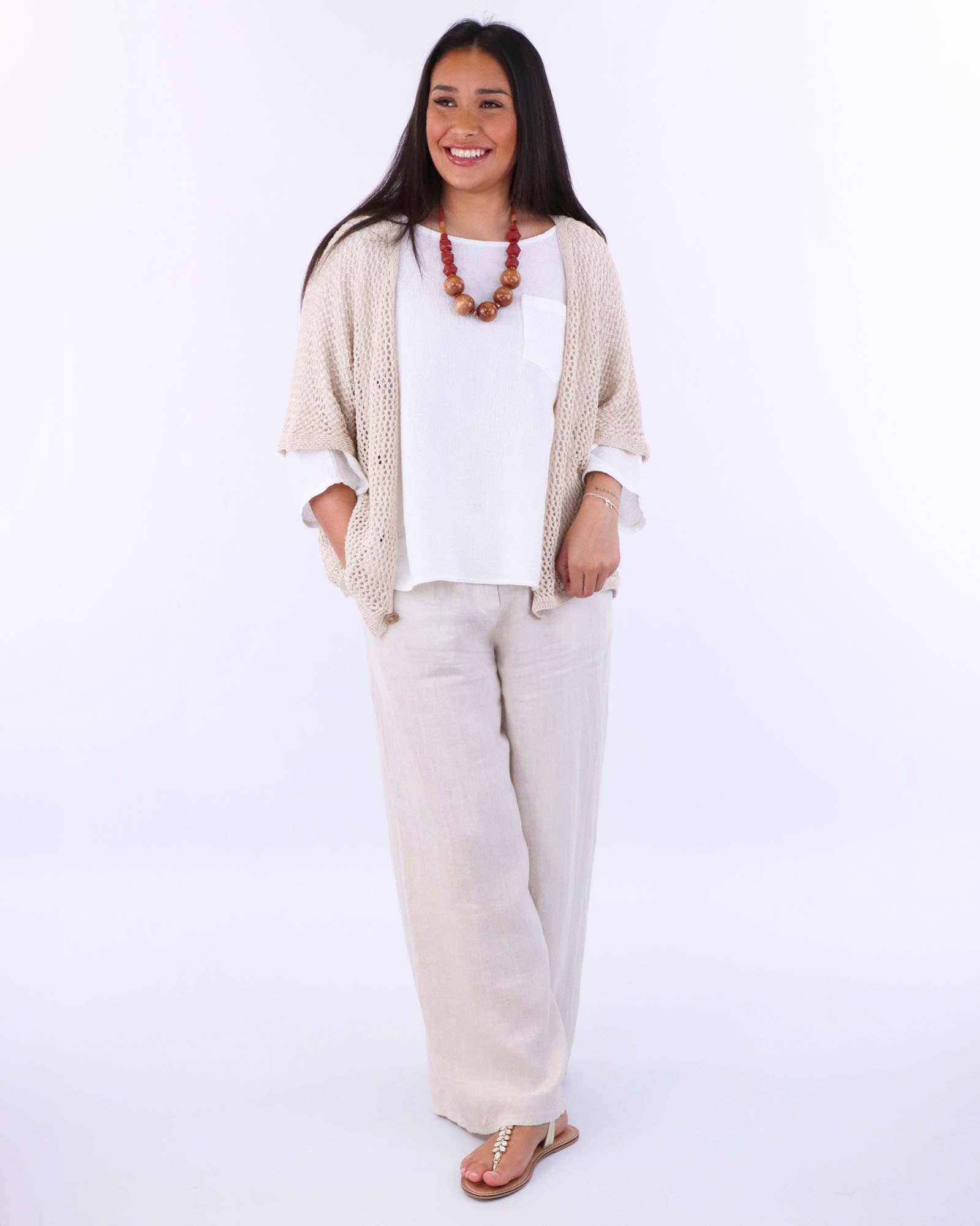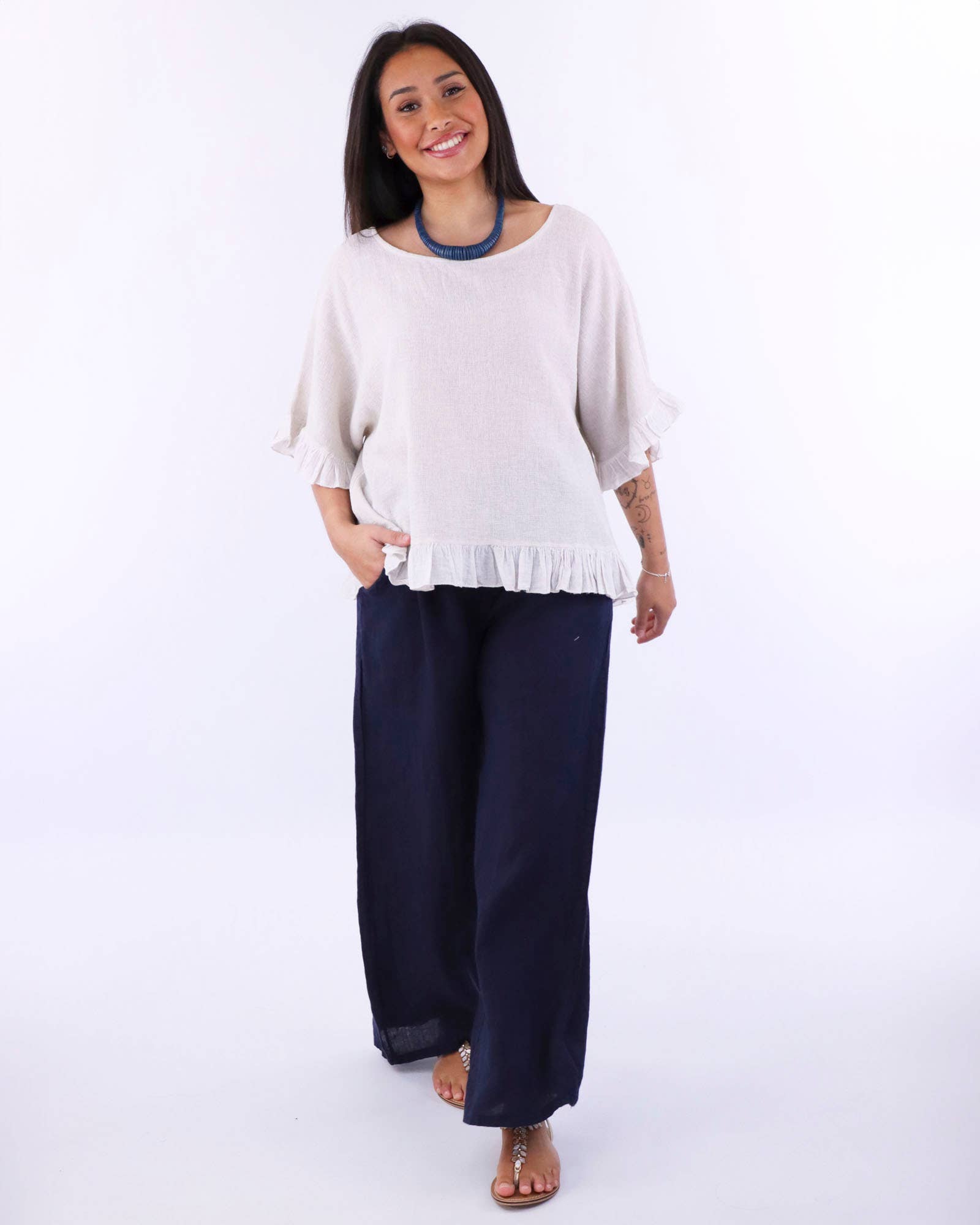 Cadenza Wide Straight Leg Linen Trousers: One Size